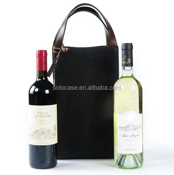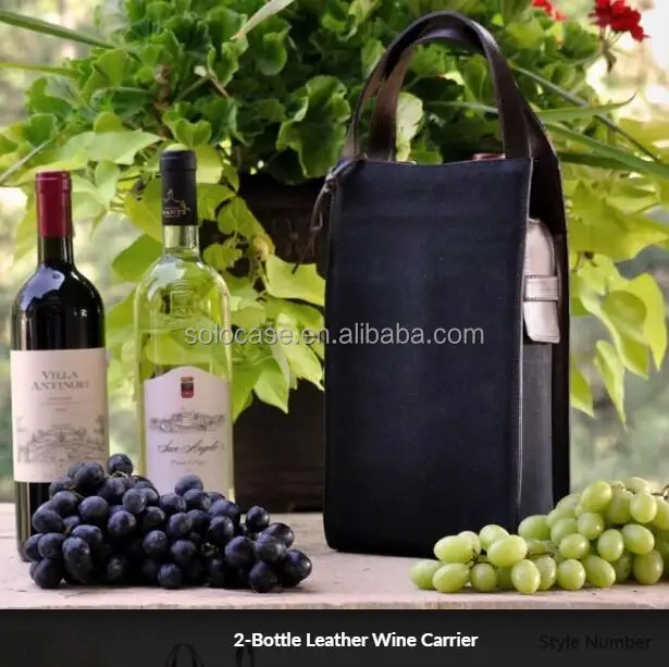 2-Bottle Leather Wine Cooler Bag Wine Carrier Personalized Leather Wine Tote