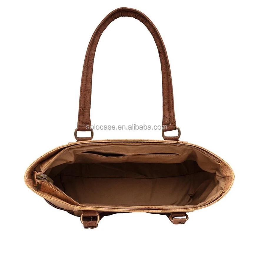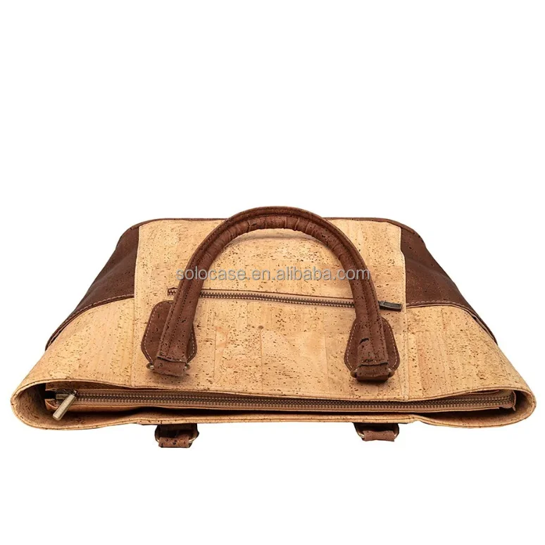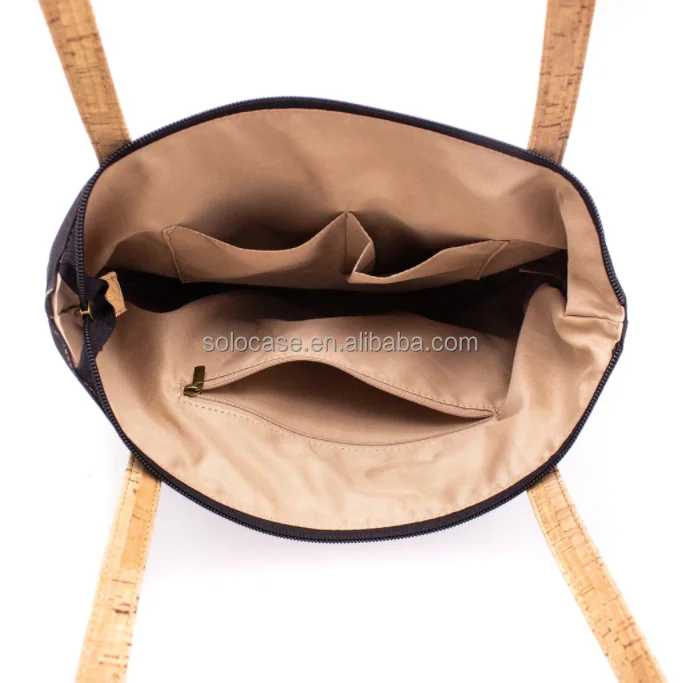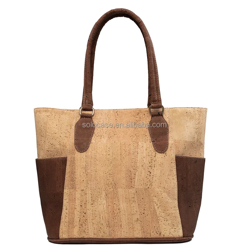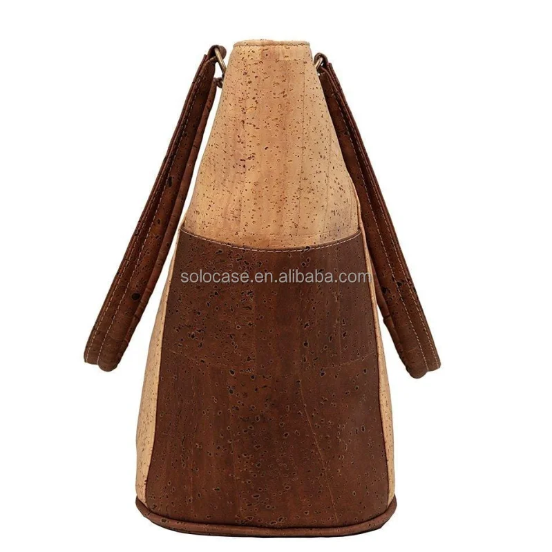 Cork Fabric Shopping Bag Fashion Eco Friendly Cotton Canvas Wood Grain Cork Tote Bag