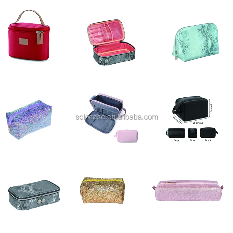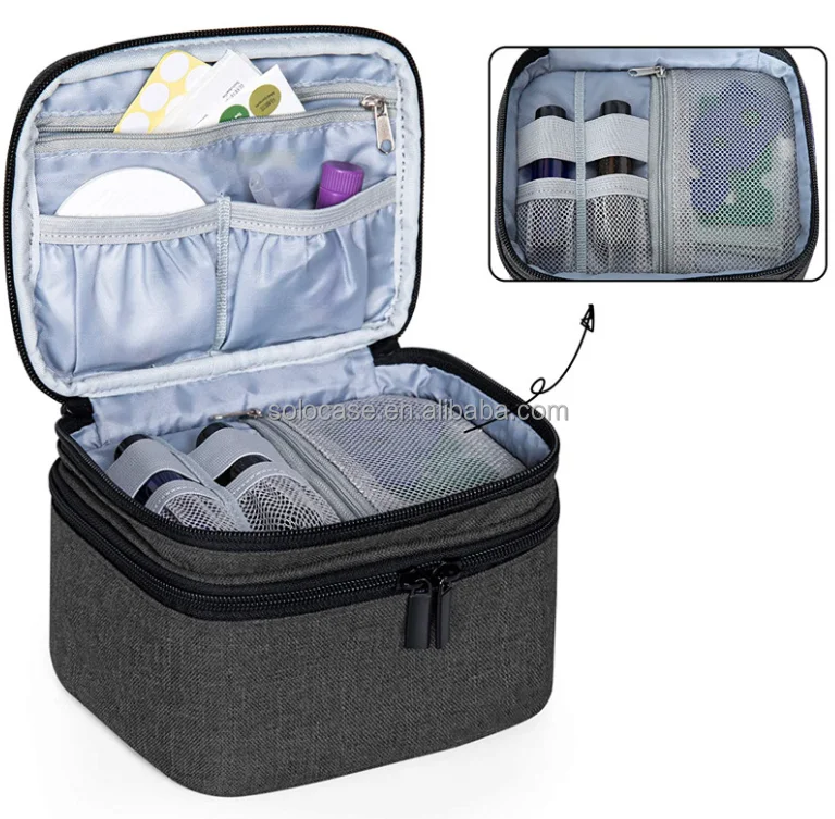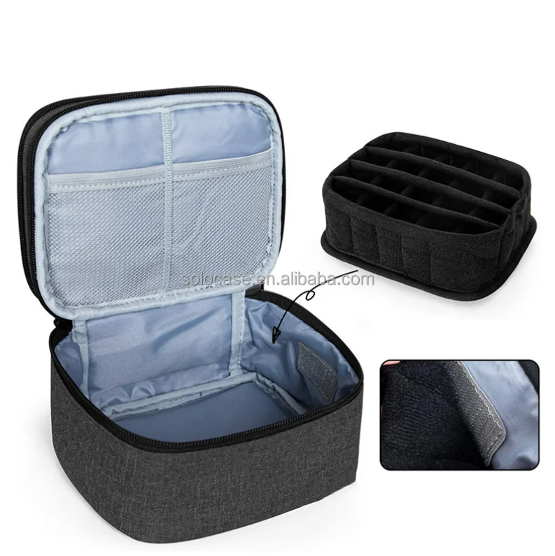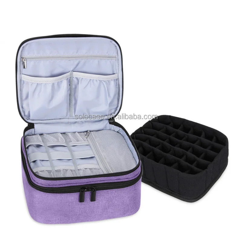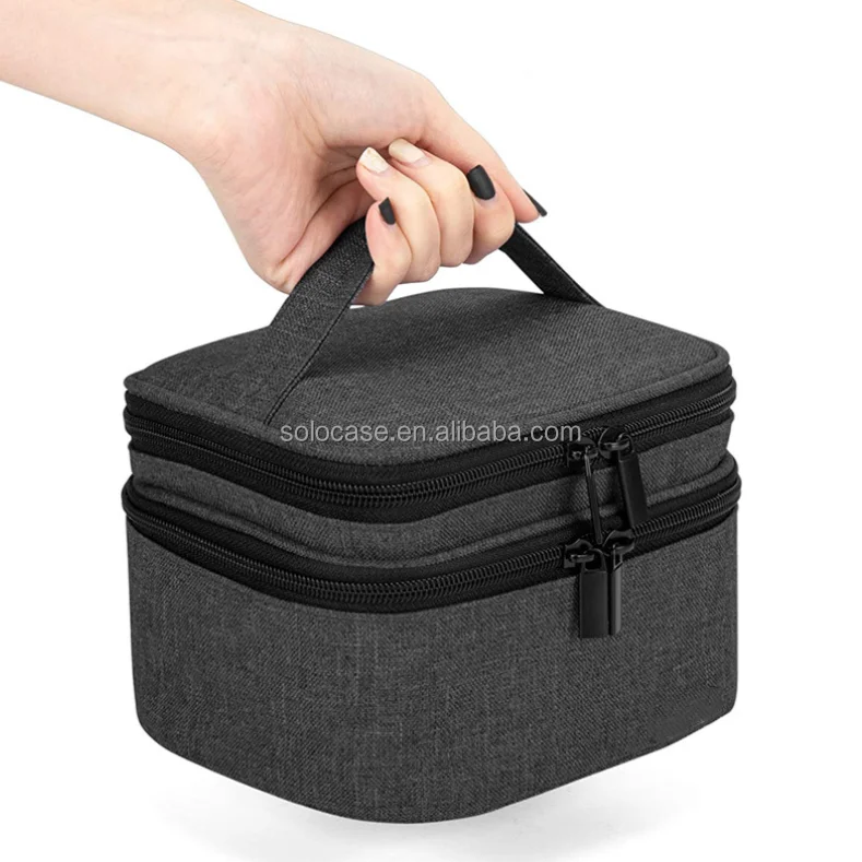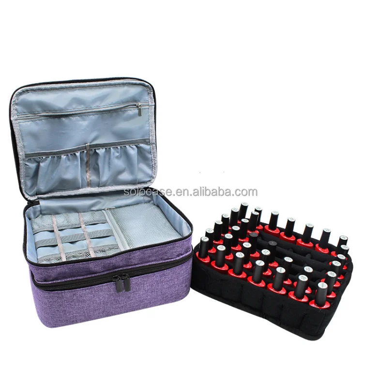 Double Layer Large Cosmetic Nail Polish Bag Organizer Portable Travel Toiletry Case with Zipper Closure Solid Color Fabric Case