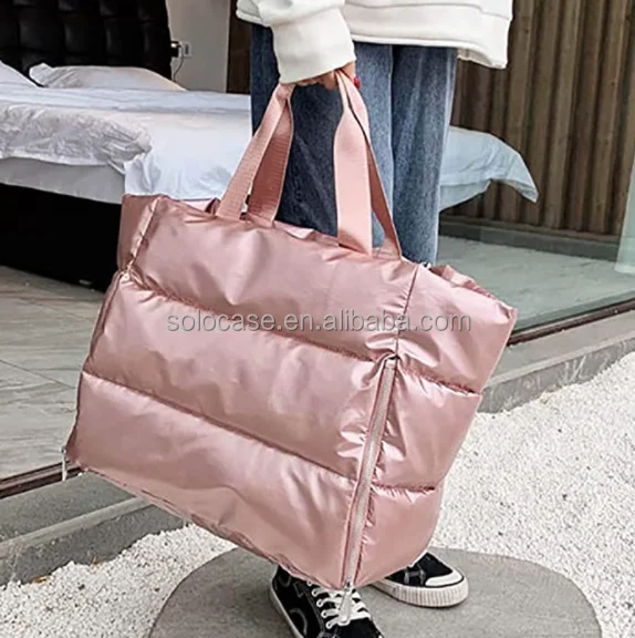 Cotton Padded Down Feather Fabric Quilted Tote Bag