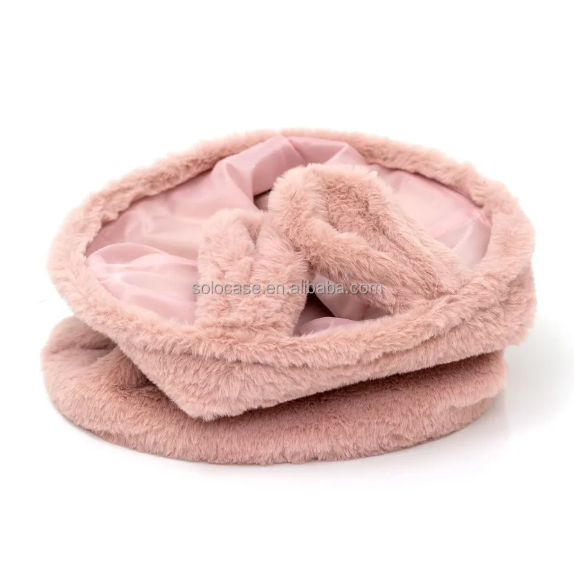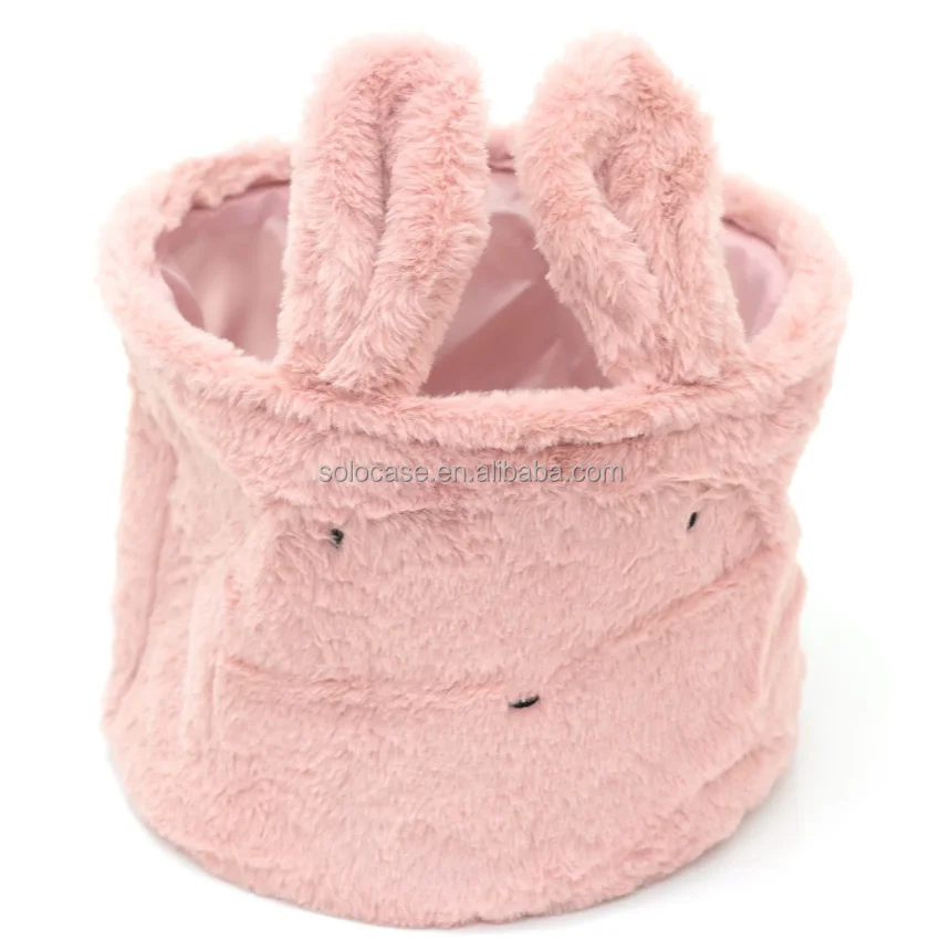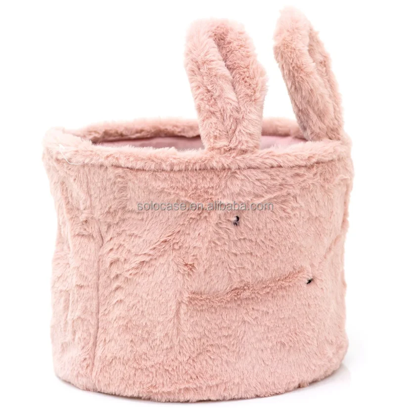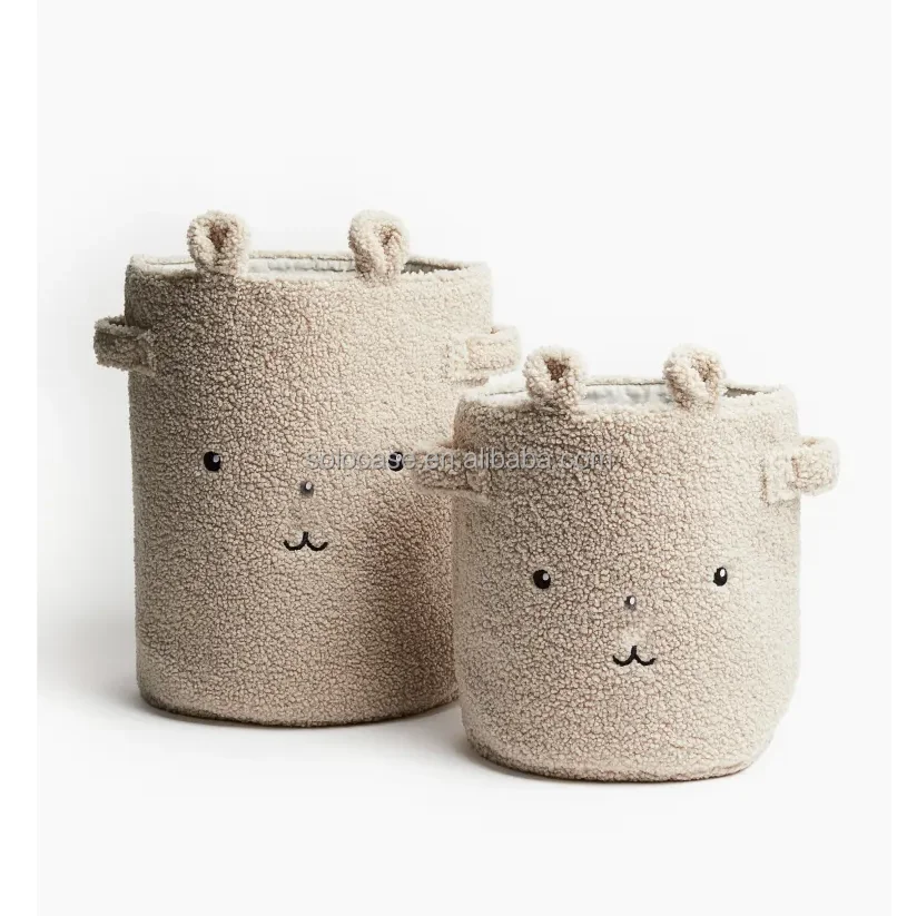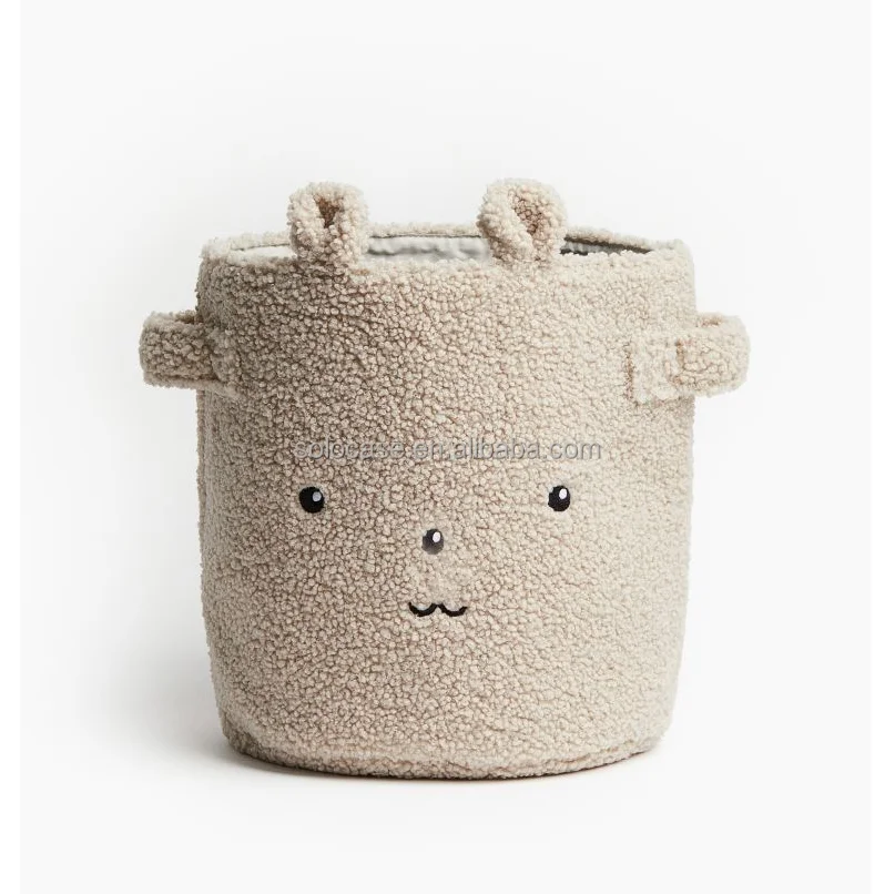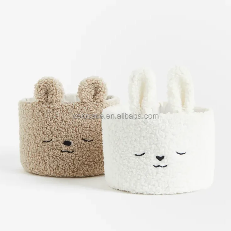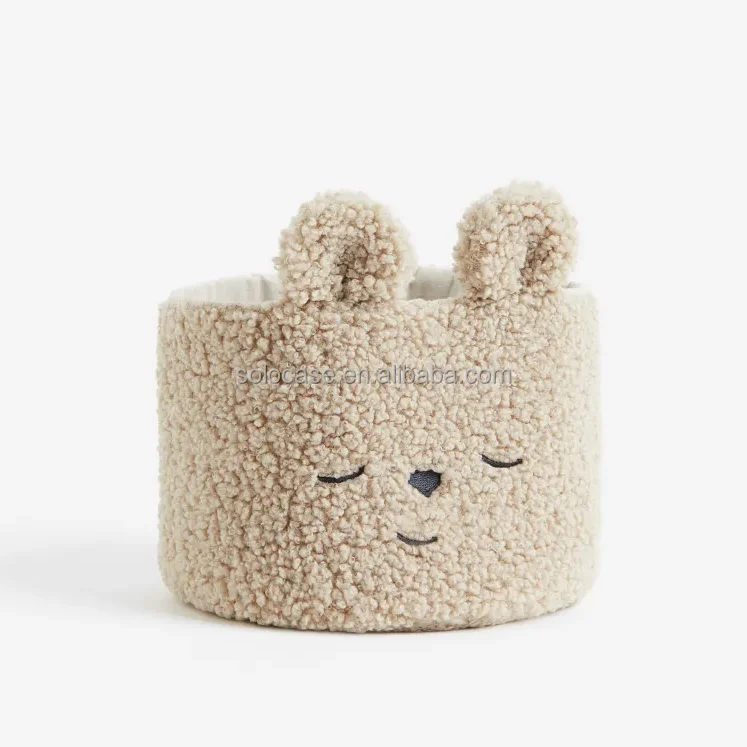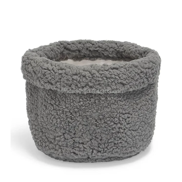 Embroidery Wool Basket Desktop Storage Round Teddy Velvet Makeup Box Organizer Beige Toy Storage Box