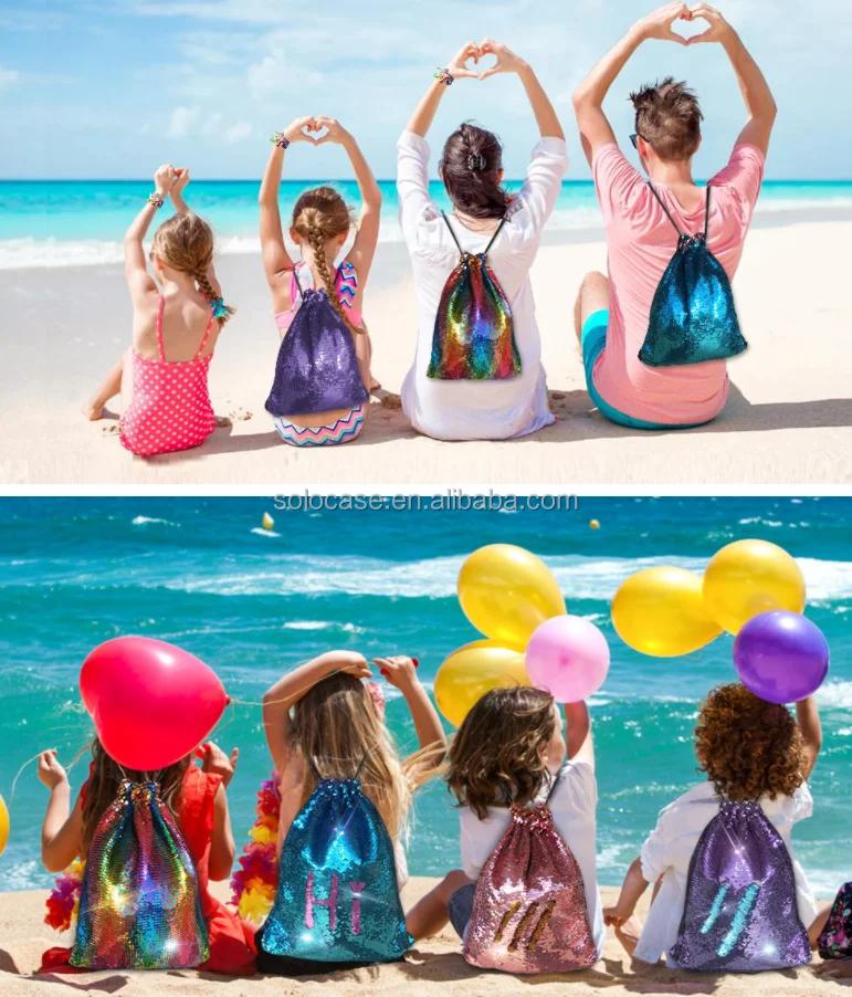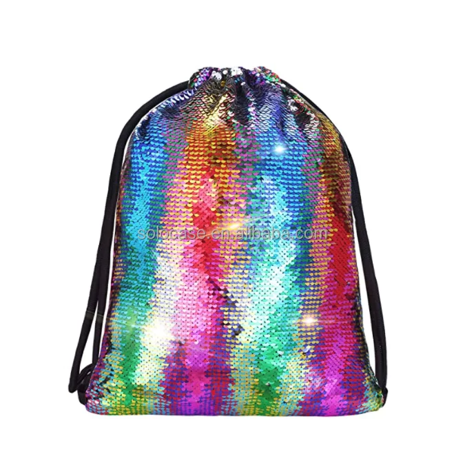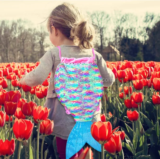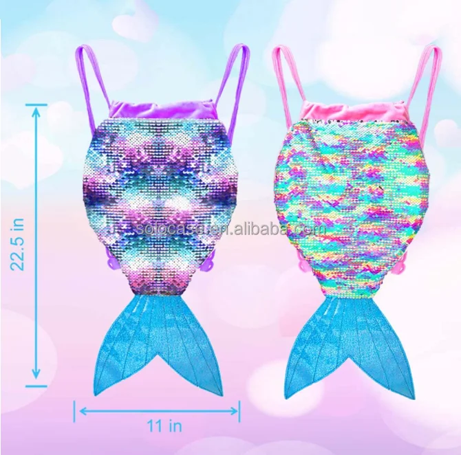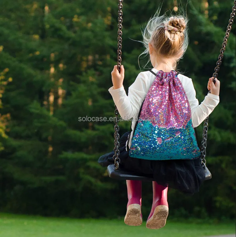 Girls Kids Mermaid Sequin Drawstring Backpack