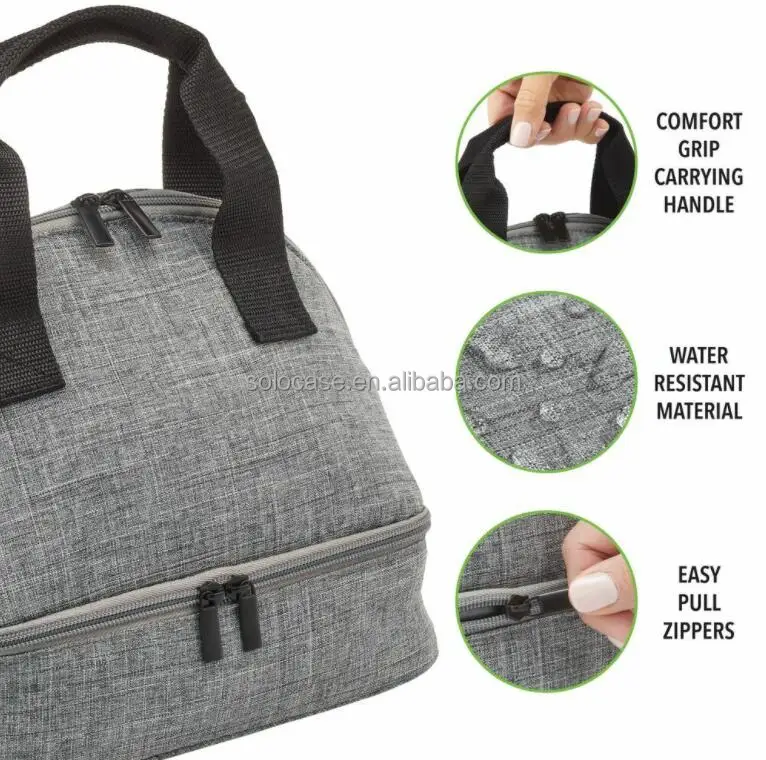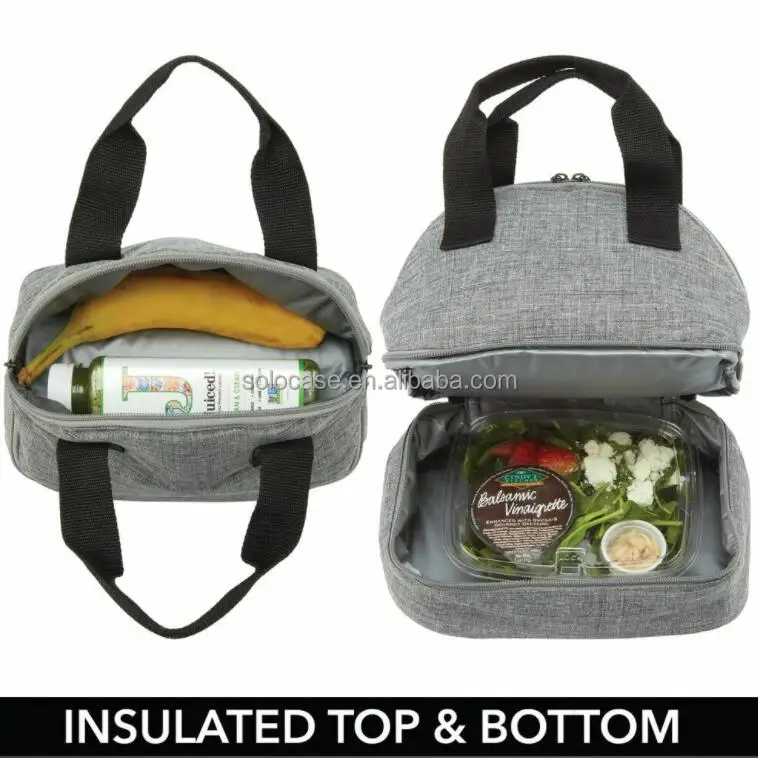 Fahasion Double-Deck Reusable Oxford Cloth Lunch Box Cooler Bag Eco-Friendly Double-Decked Insulated Bag for Lunches