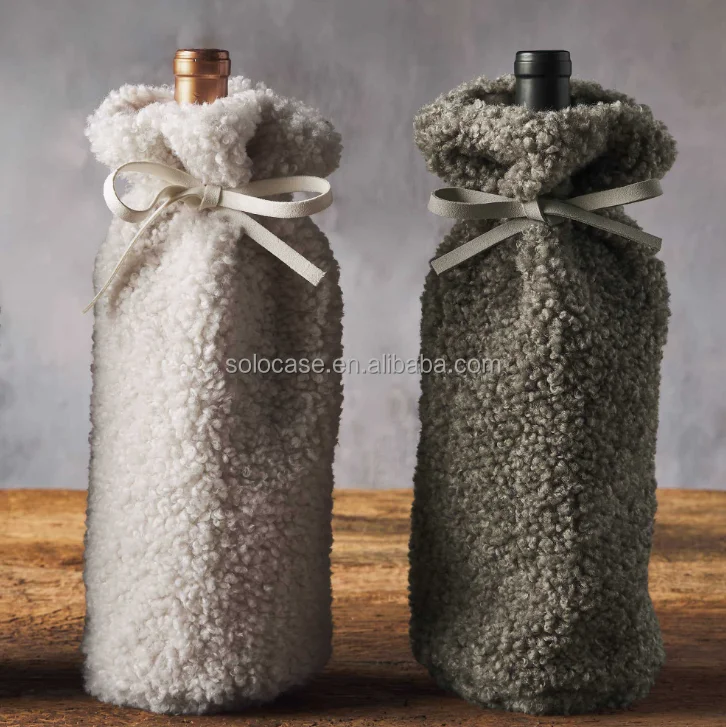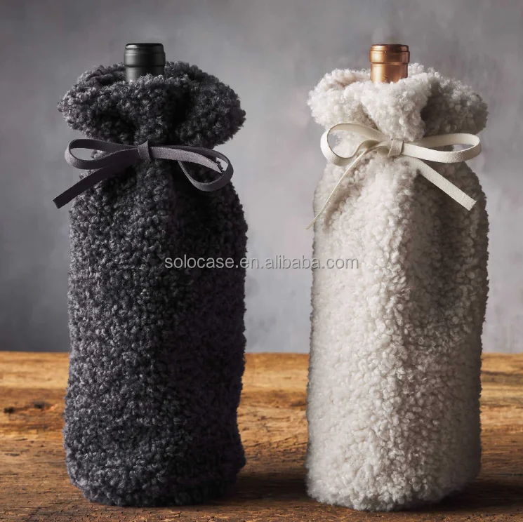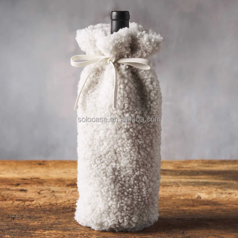 Teddy Wine Tote Bag Sherpa Wine Bag One Bottle Wine Tote Carrier