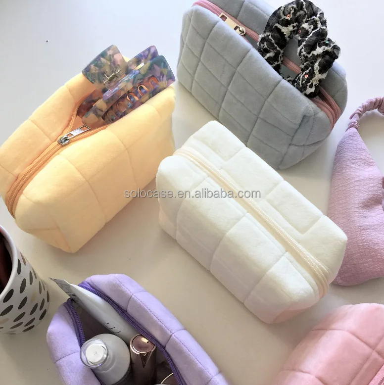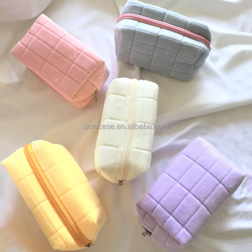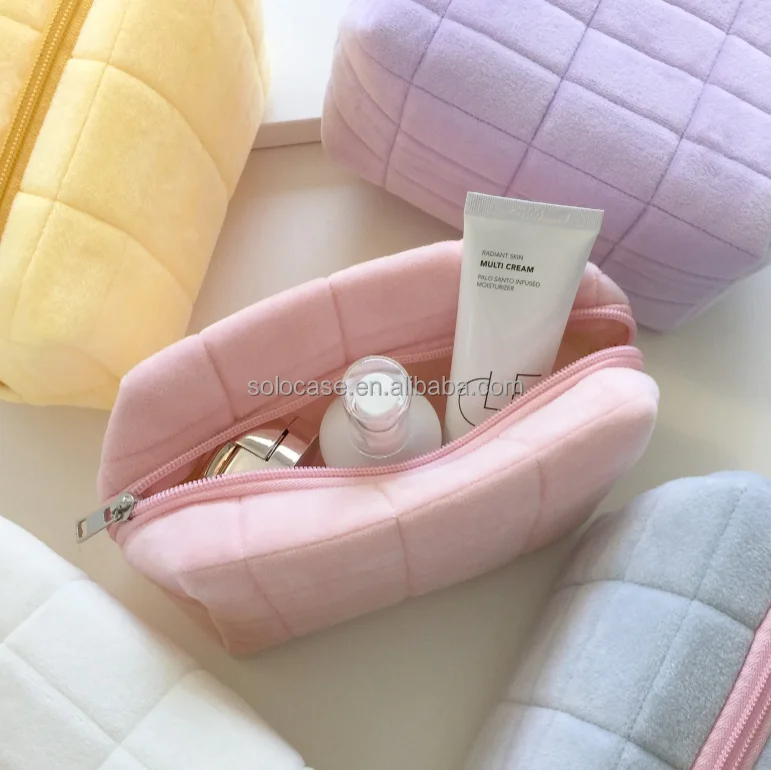 Custom Logo Large Capacity Velvet Teddy Cosmetic Organizer Bag with Zipper Portable Lady Makeup Case for Travel