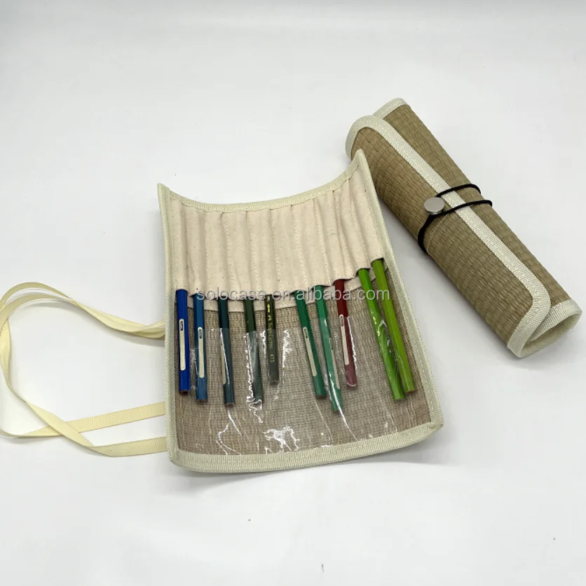 Vintage Style Straw Case Roller Holder for Makeup Pens or Pencils Unique Cosmetic Bags & حالات