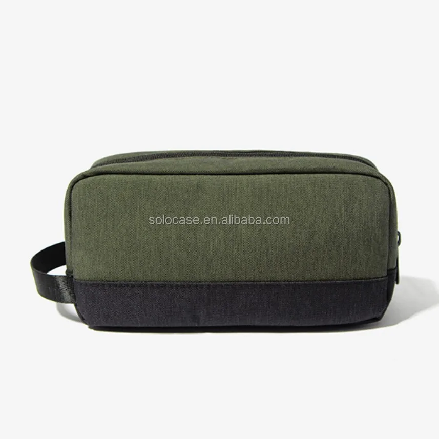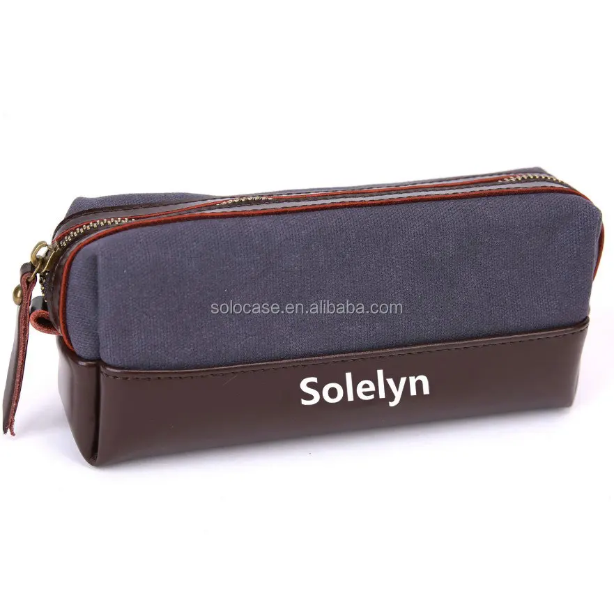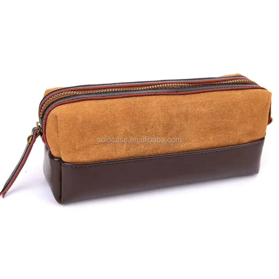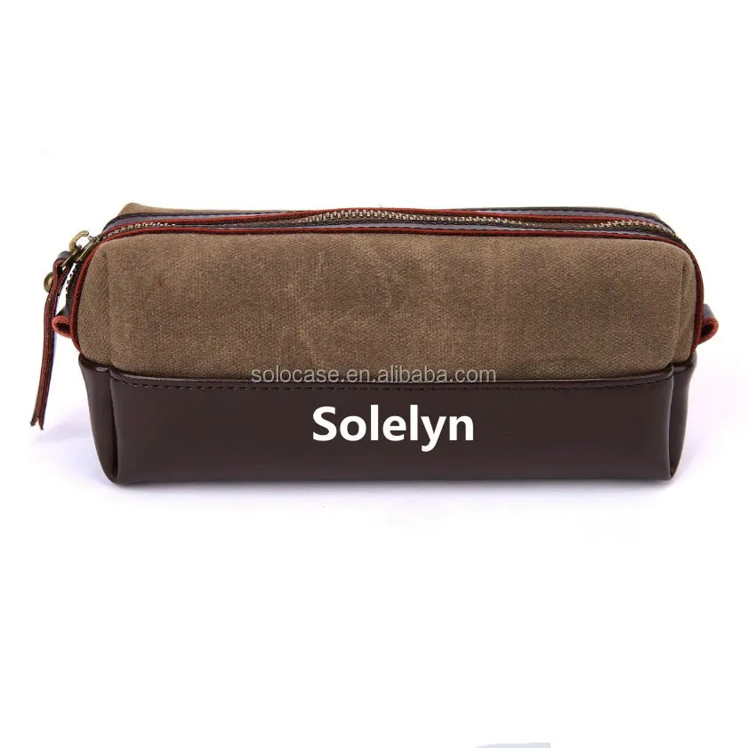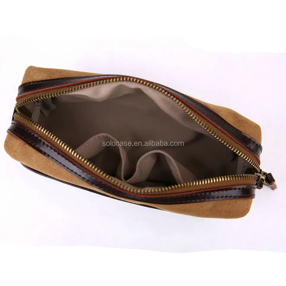 Canvas Cosmetic Bag Waxed Cotton Canvas Toiletry Bag with Leather Handle