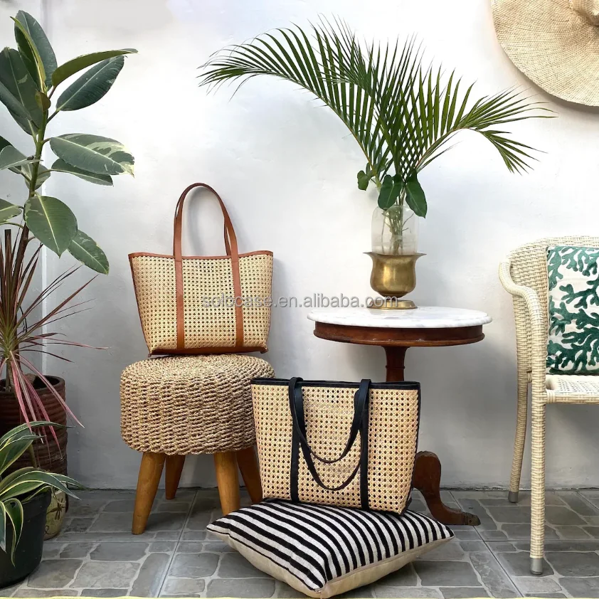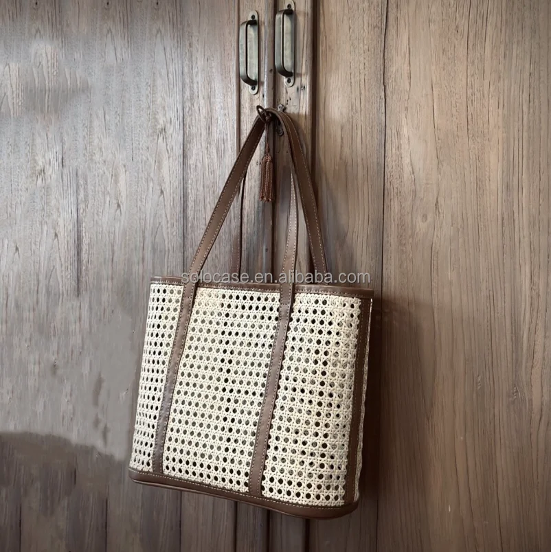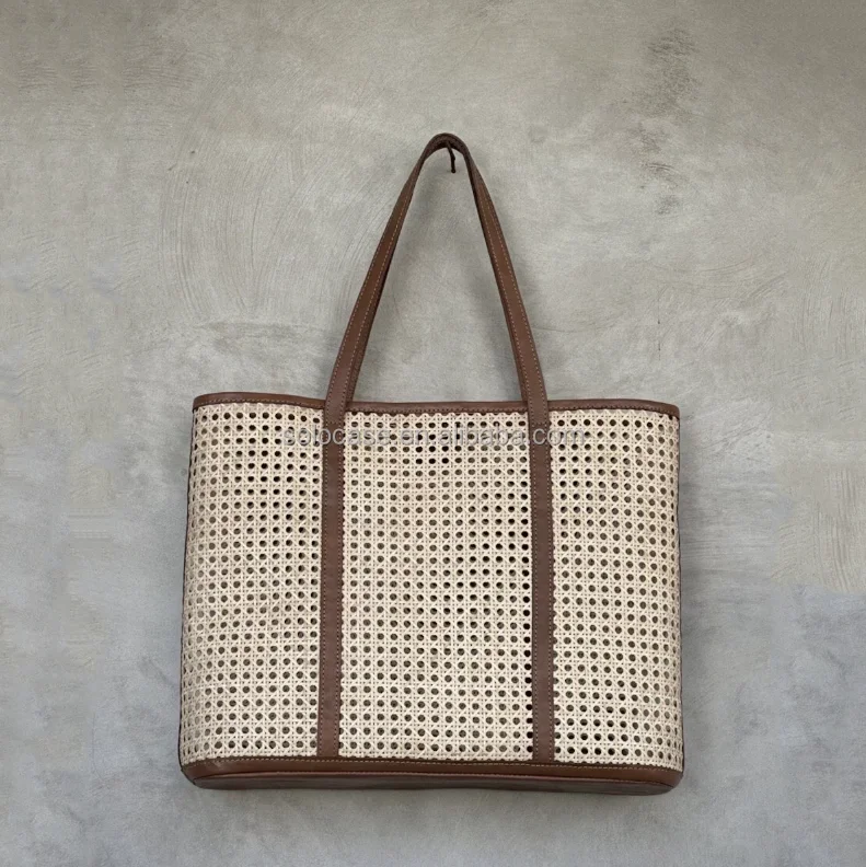 Women Handmade Large Rattan Woven Tote Shopper Bag