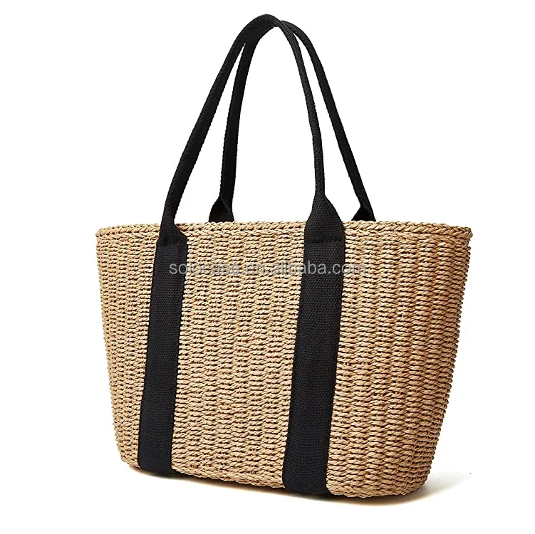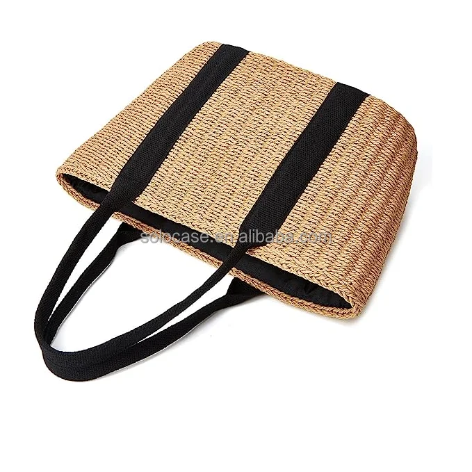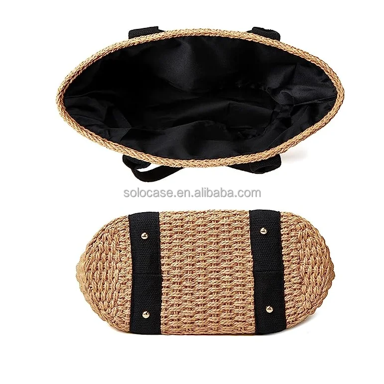 Women Straw Bags Summer Beach Large Tote Bag Handmade Woven Shoulder Crossbody Handbag