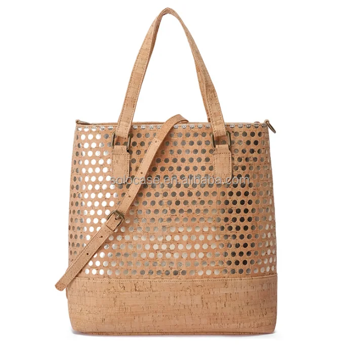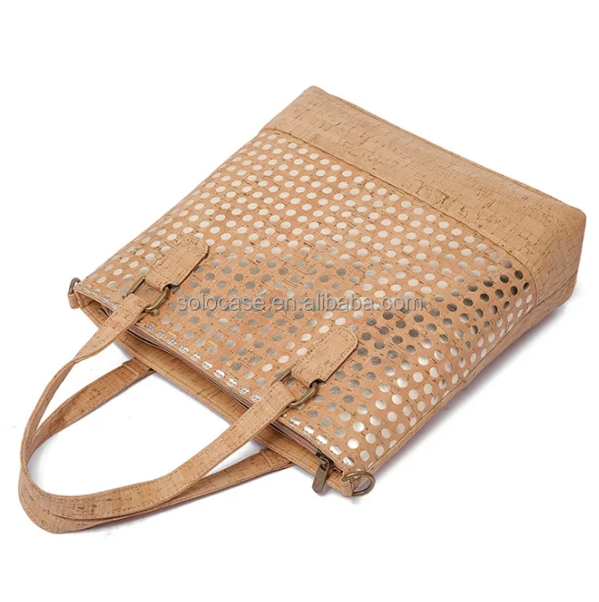 Women’s Gold Textured Cork Tote Bag with Geometrical Laser Cut Premium Women’s Tote Bag