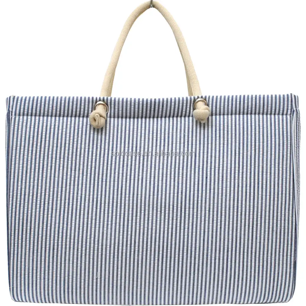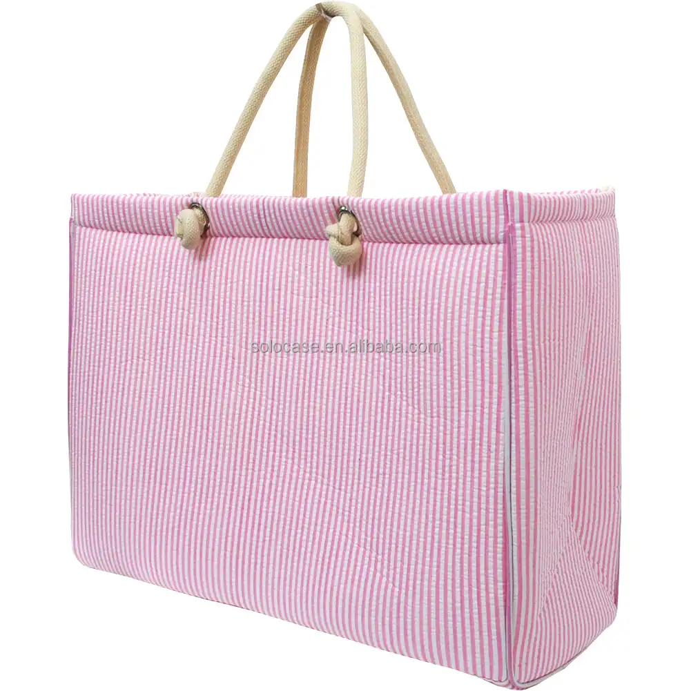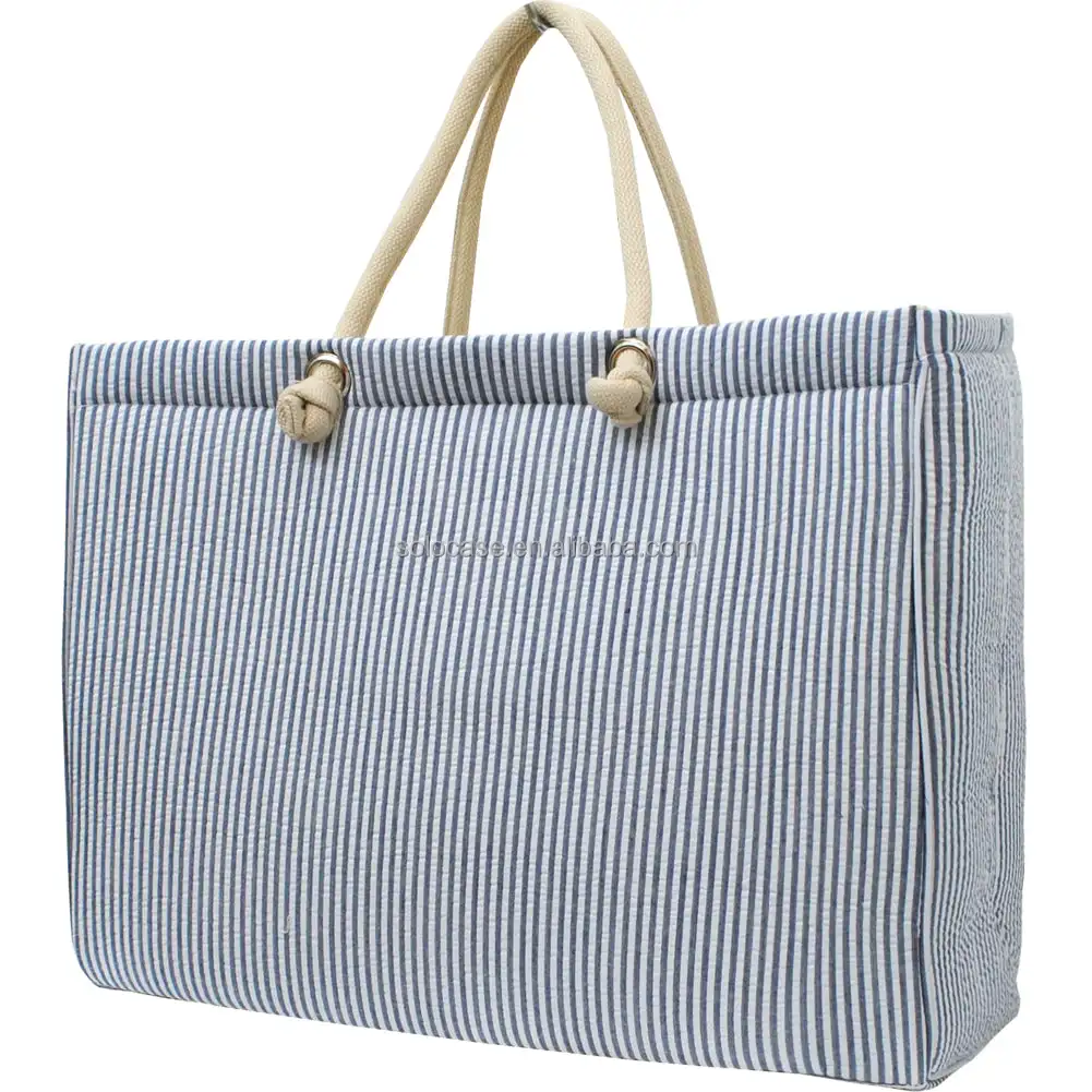 Women’s Lightweight Seersucker Tote Bag with Large Rope Magnetic Button Closure Convenient Large Capacity Easy to Carry