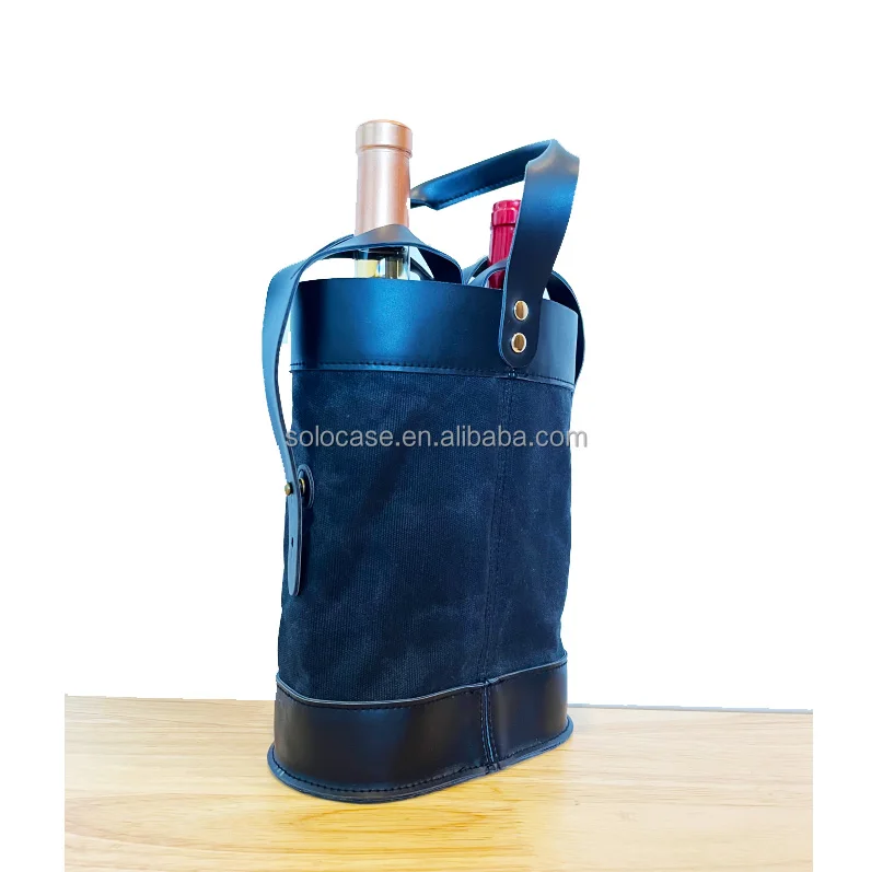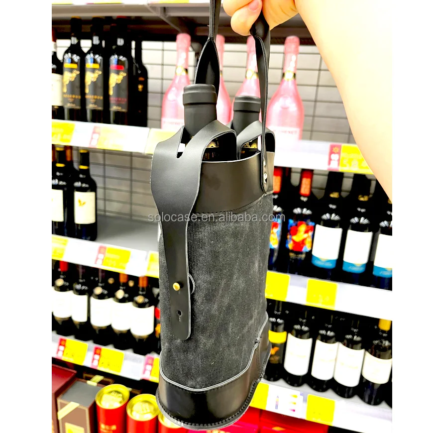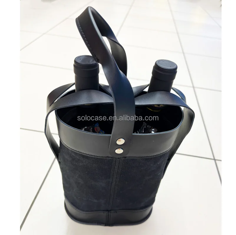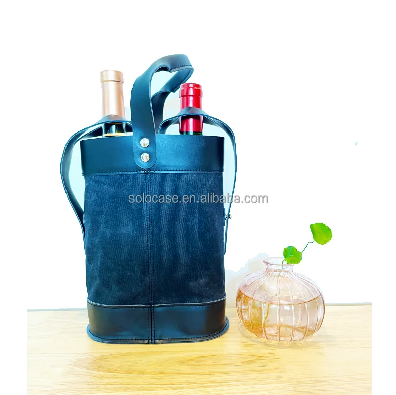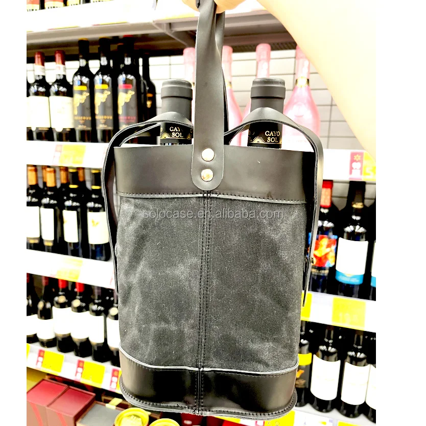 2-Bottle Insulated Wine Tote Personalized Leather Wine Carrier With Printed Letter Pattern and Zipper Closure for Travel