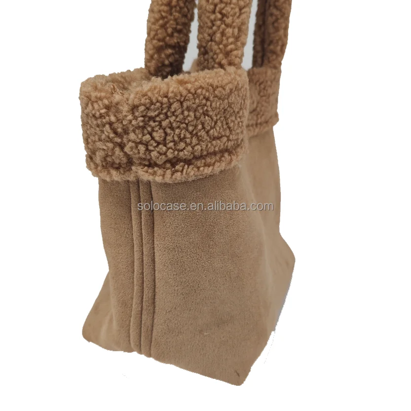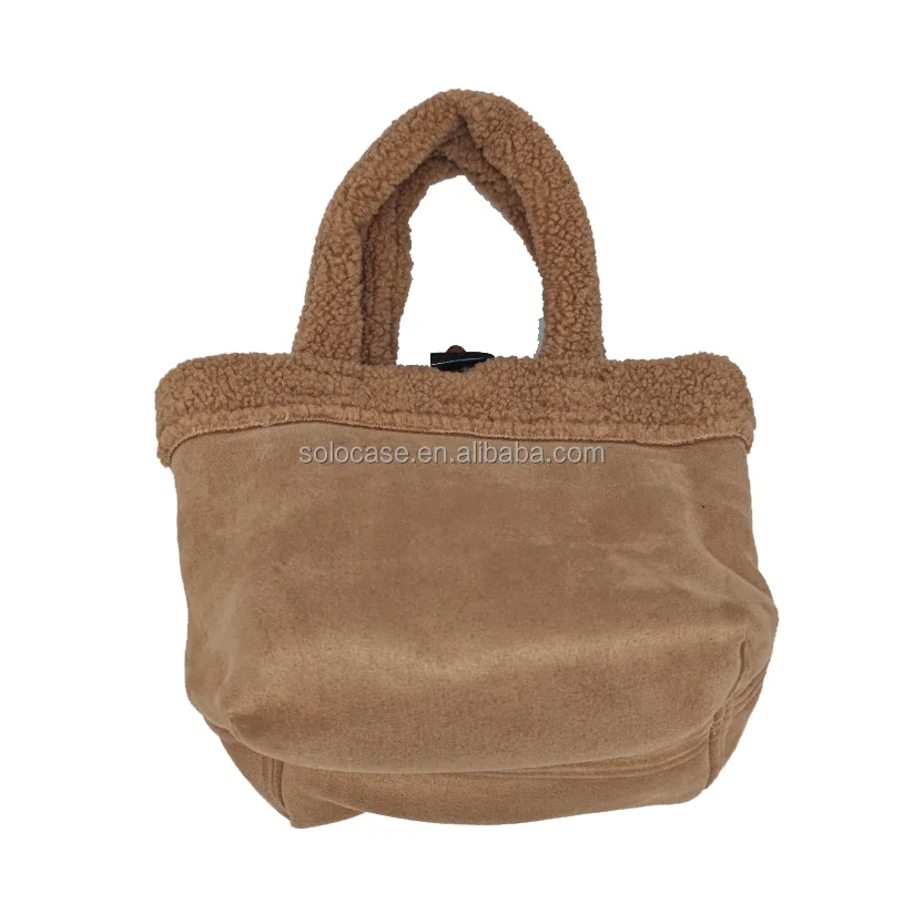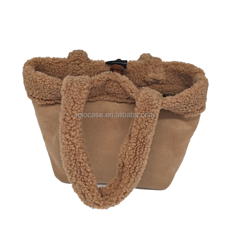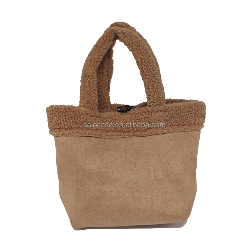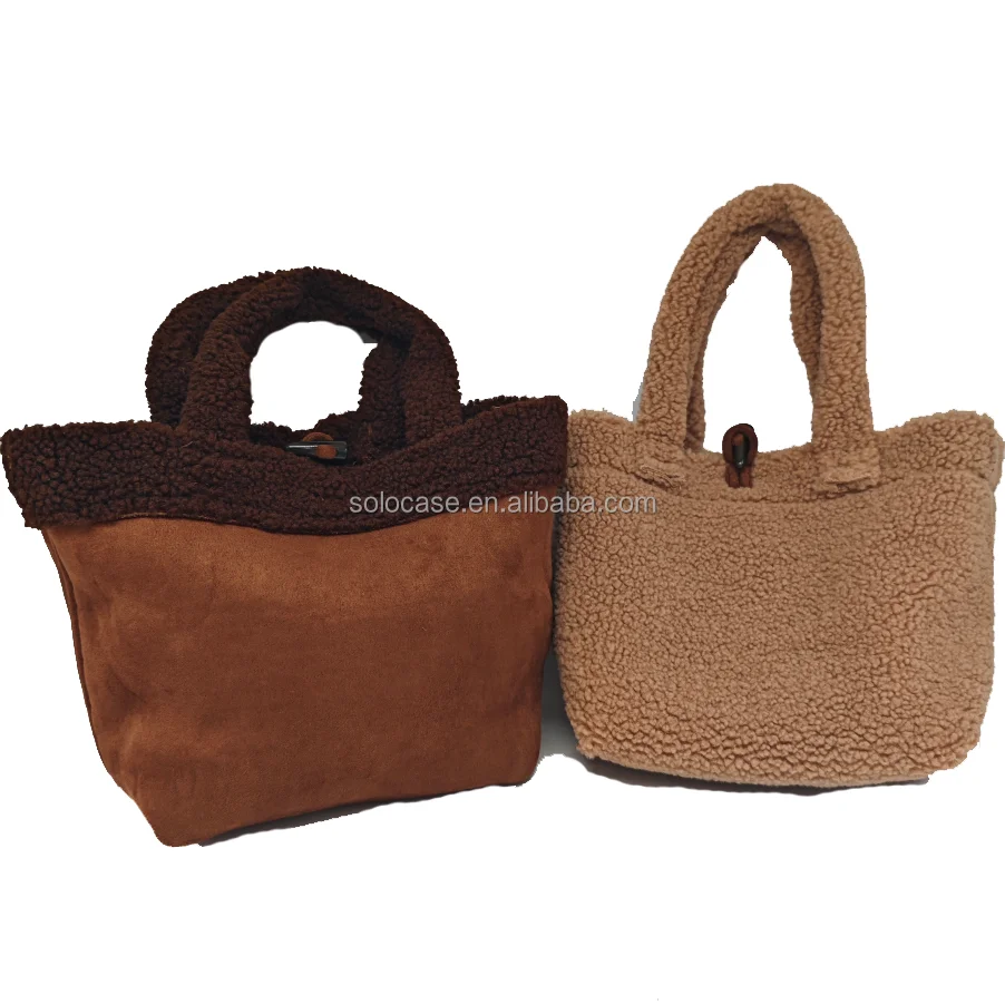 Cute Plush Women’s Wool Fluffy Shoulder Bag Beige Mini Teddy Tote Bag for Girl