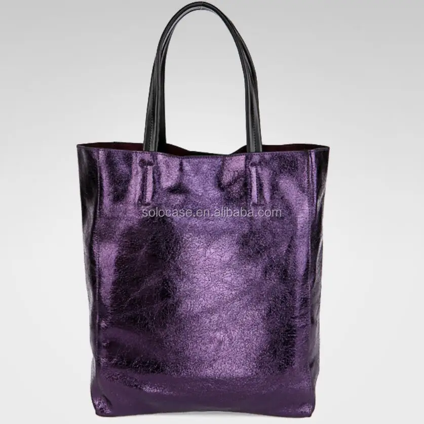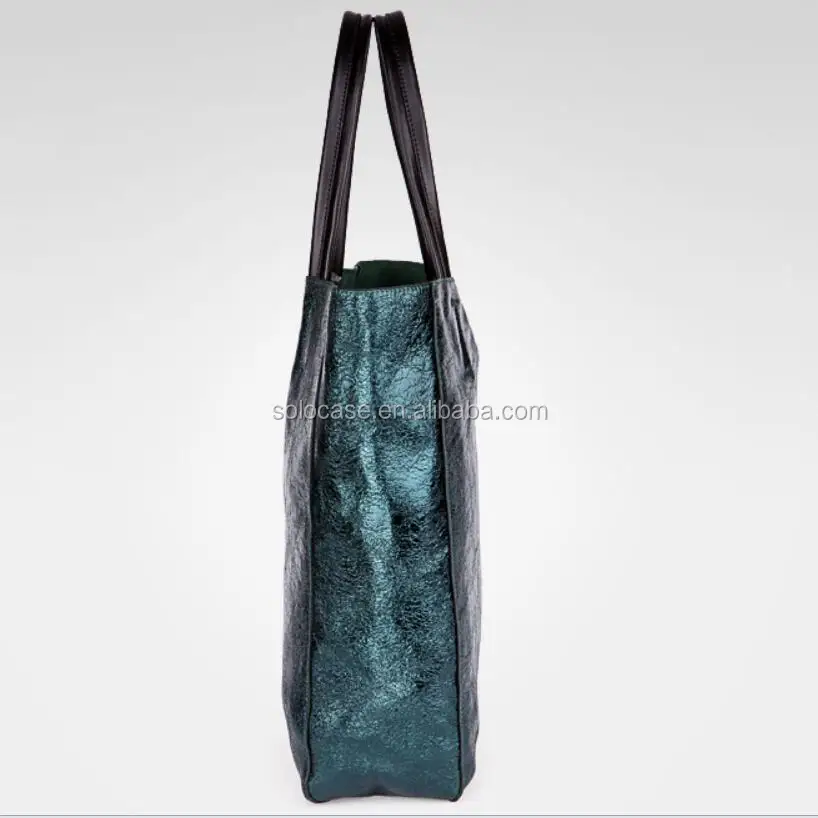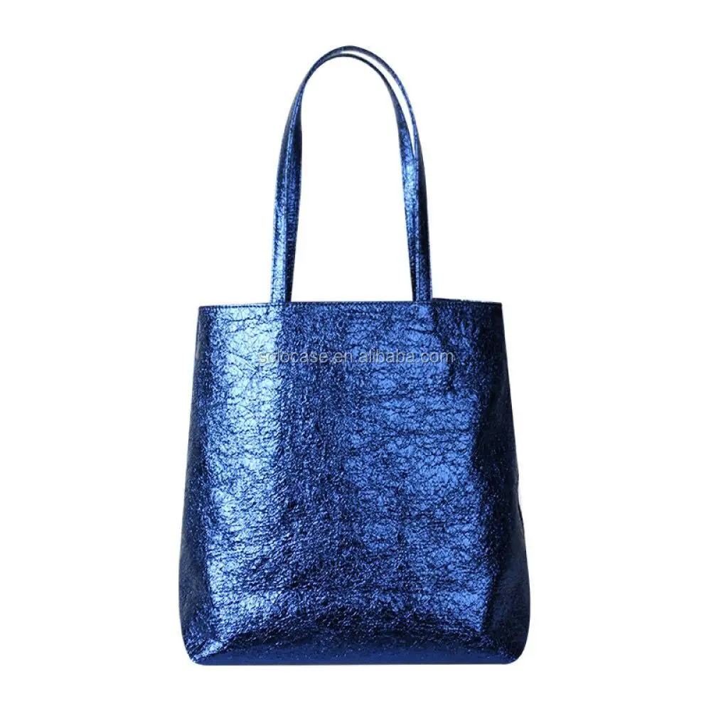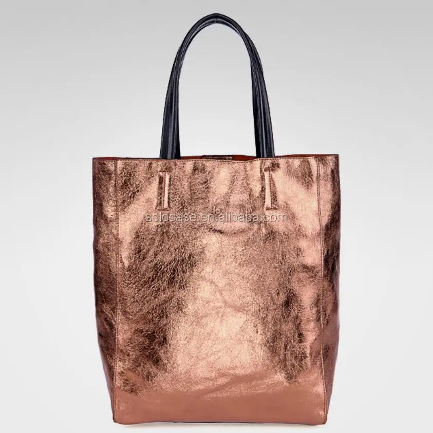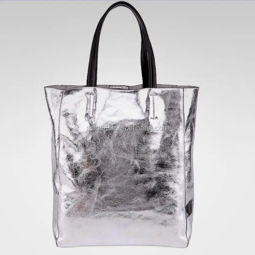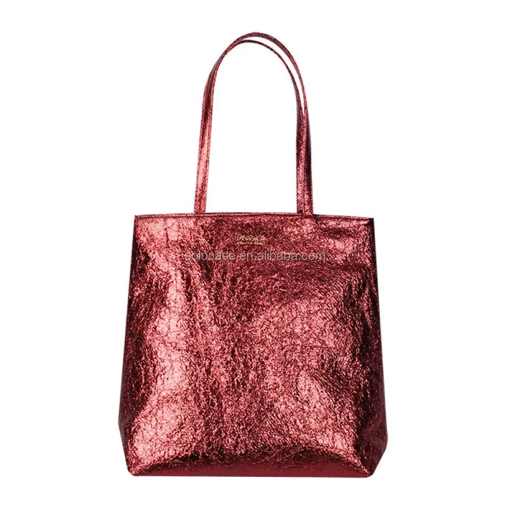 Women’s Monogram Metallic Leather Tote Bag Elegant Shopping Bag