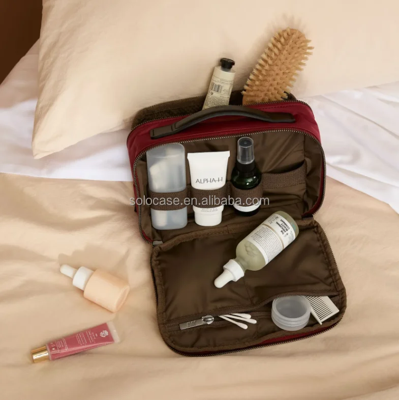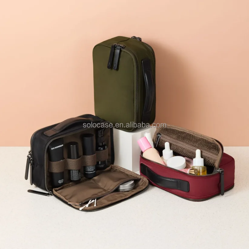 Woman New Style Portable Three-Layer Double Zipper Nylon Storage Bag Travel Cosmetics Bag