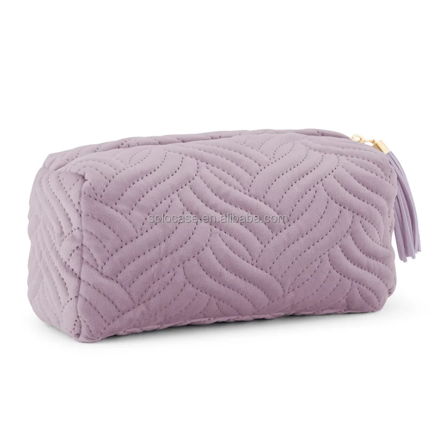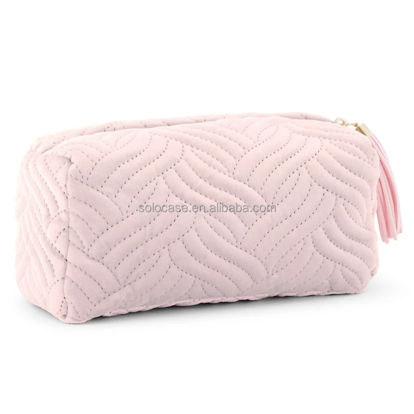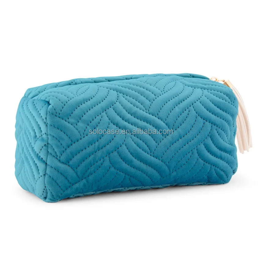 Small Personalized Velvet Quilted Makeup Bag for Women Cosmetic Bags & Fälle