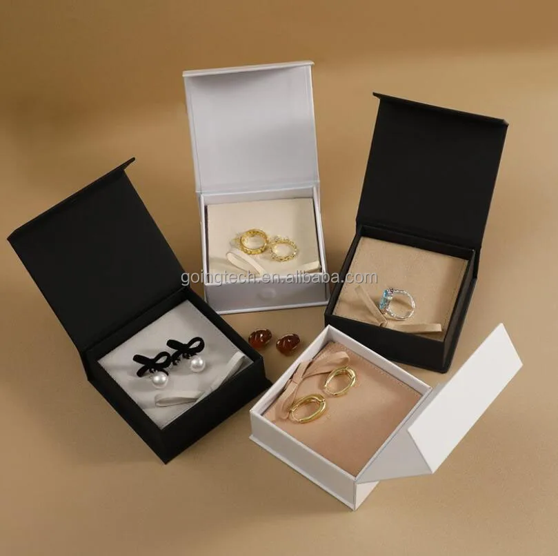 | Nombre del producto | Custom Magnetic Flap Earring jewelry boxes rigid paper display box for women set gold logo Plush green ring box |