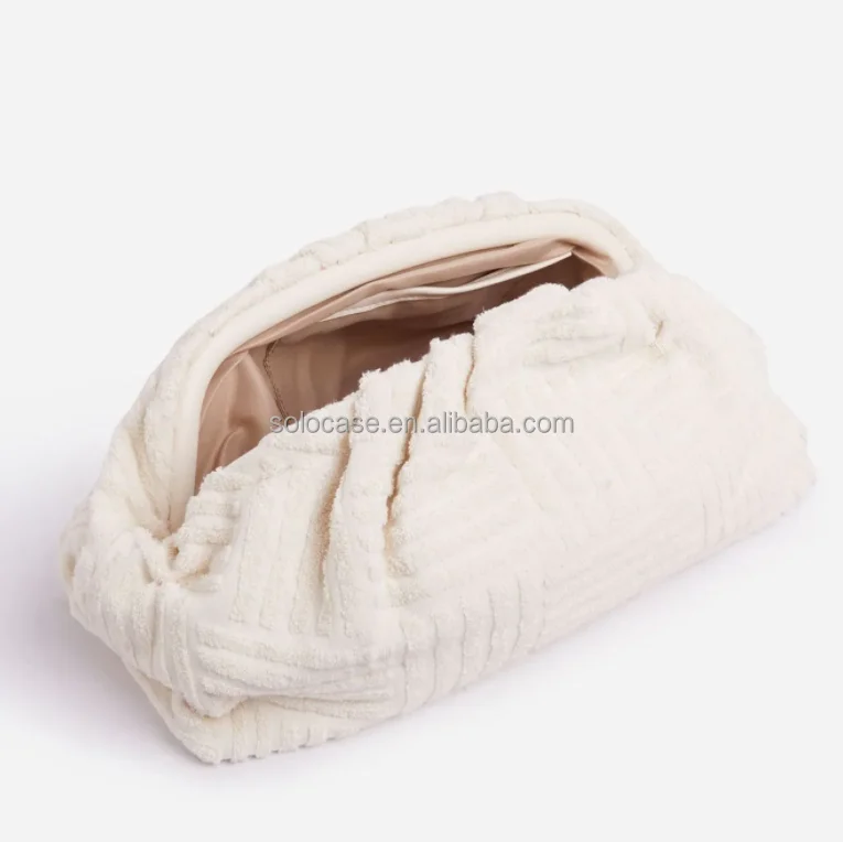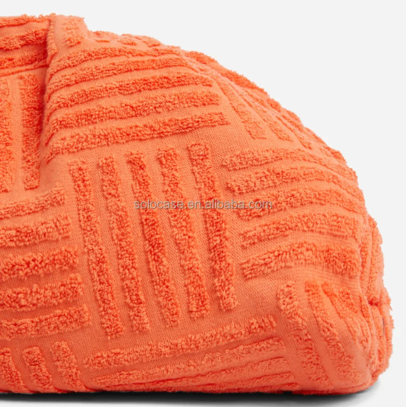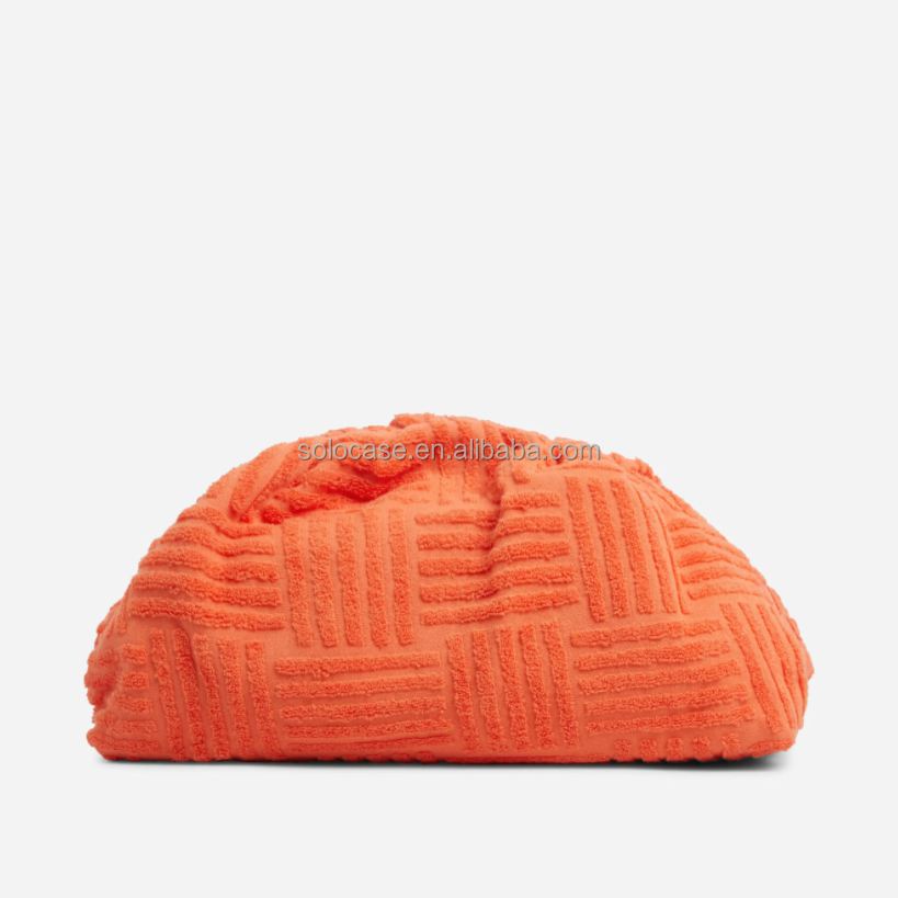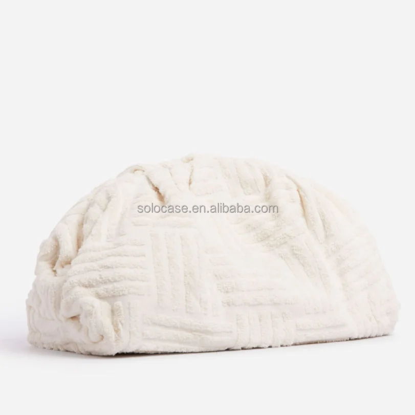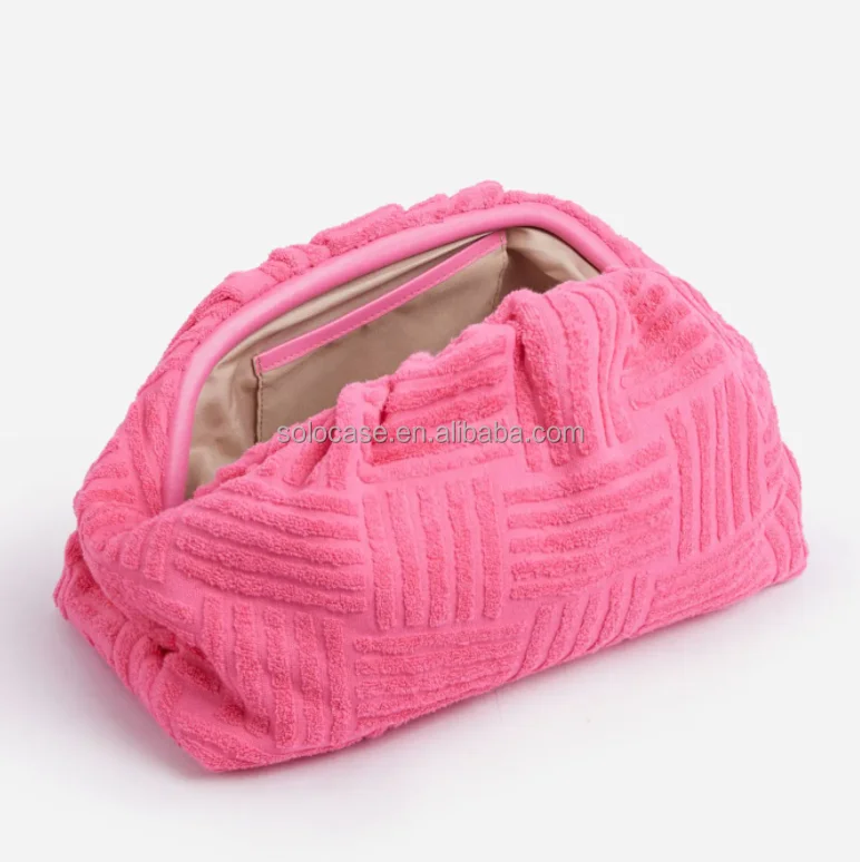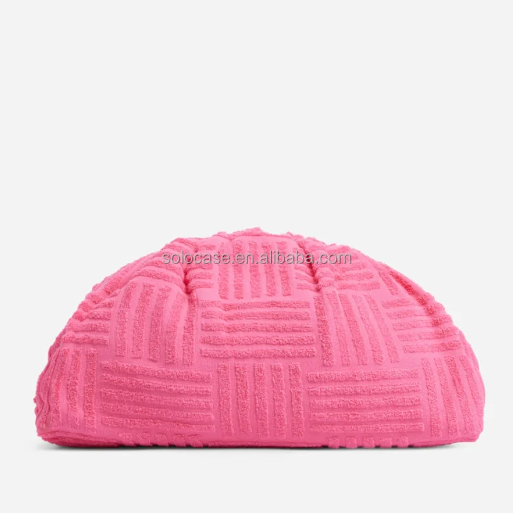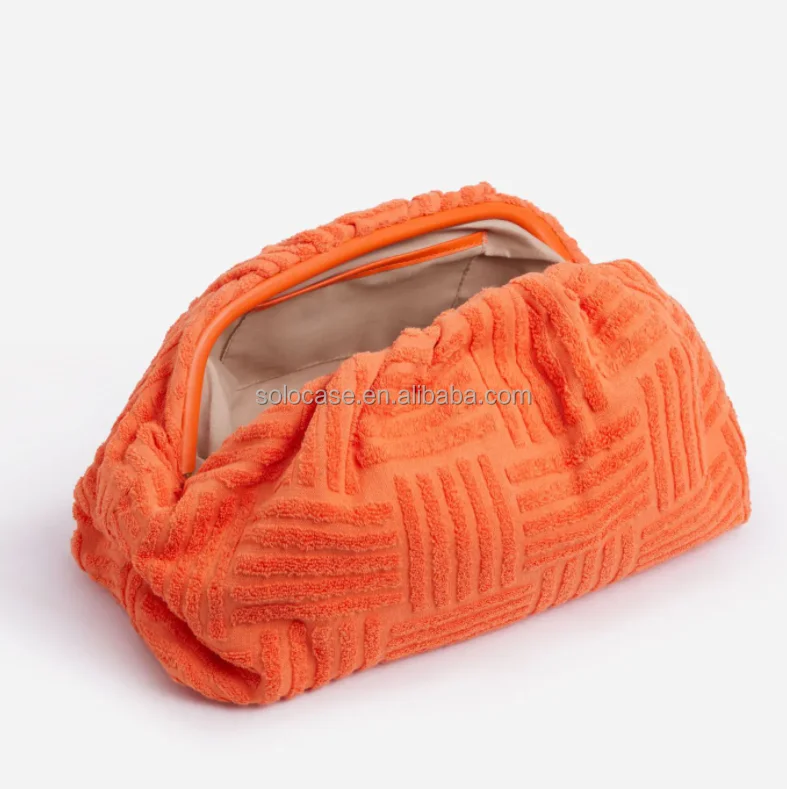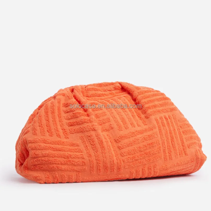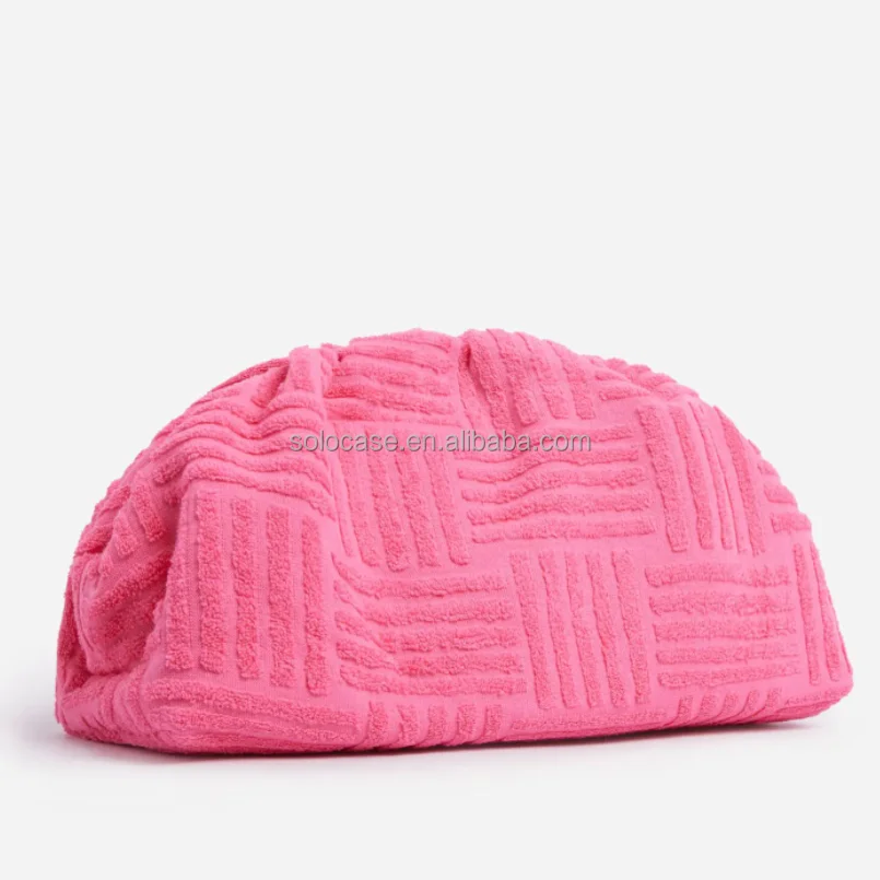 Women Fashion Terry Fabric Cloud Bag for Ladies Dumpling Shape Coral Clutch Bags Evening Bag