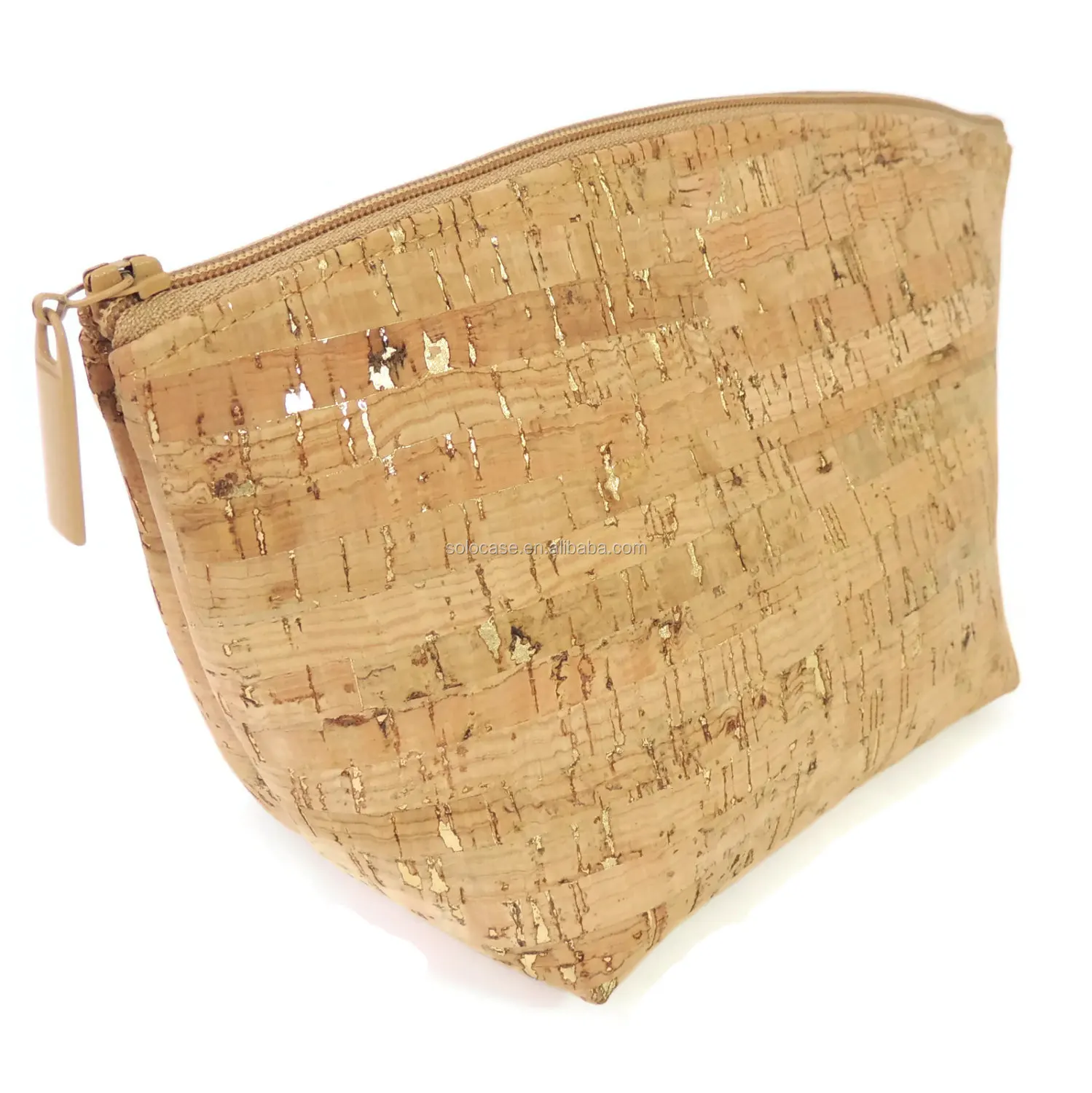 Gold Flecked Cork Makeup Bag Cosmetic Zip Pouch with Stylish Design