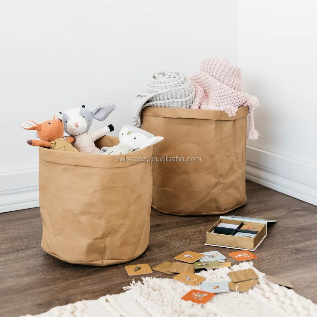 Home Storage Organizer Bin Made of Washable Kraft Paper Durable Shopping Bags for Efficient Home Storage