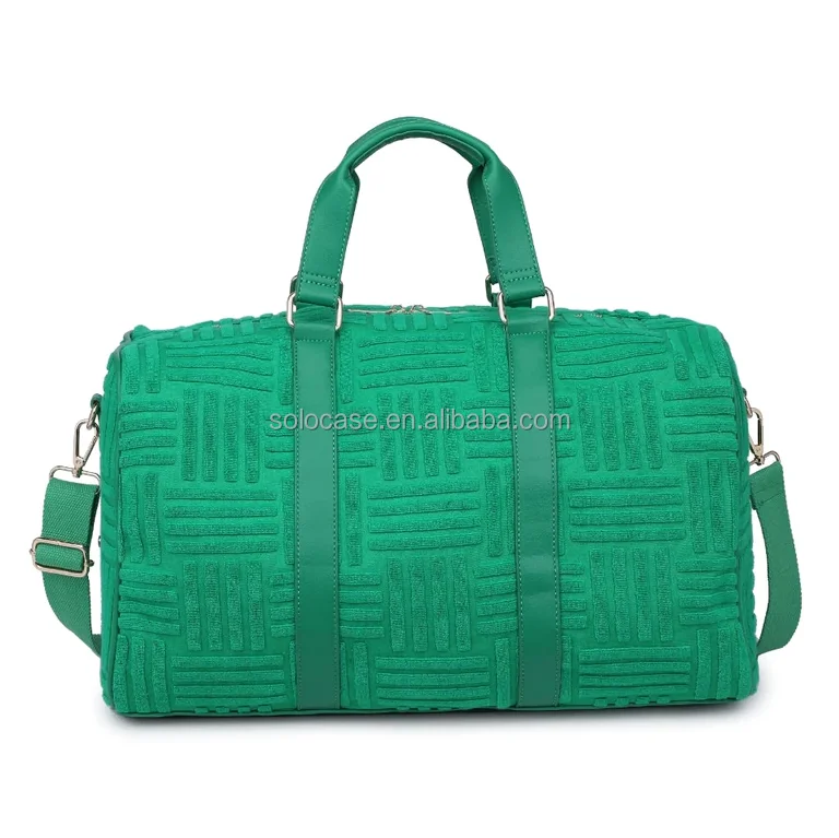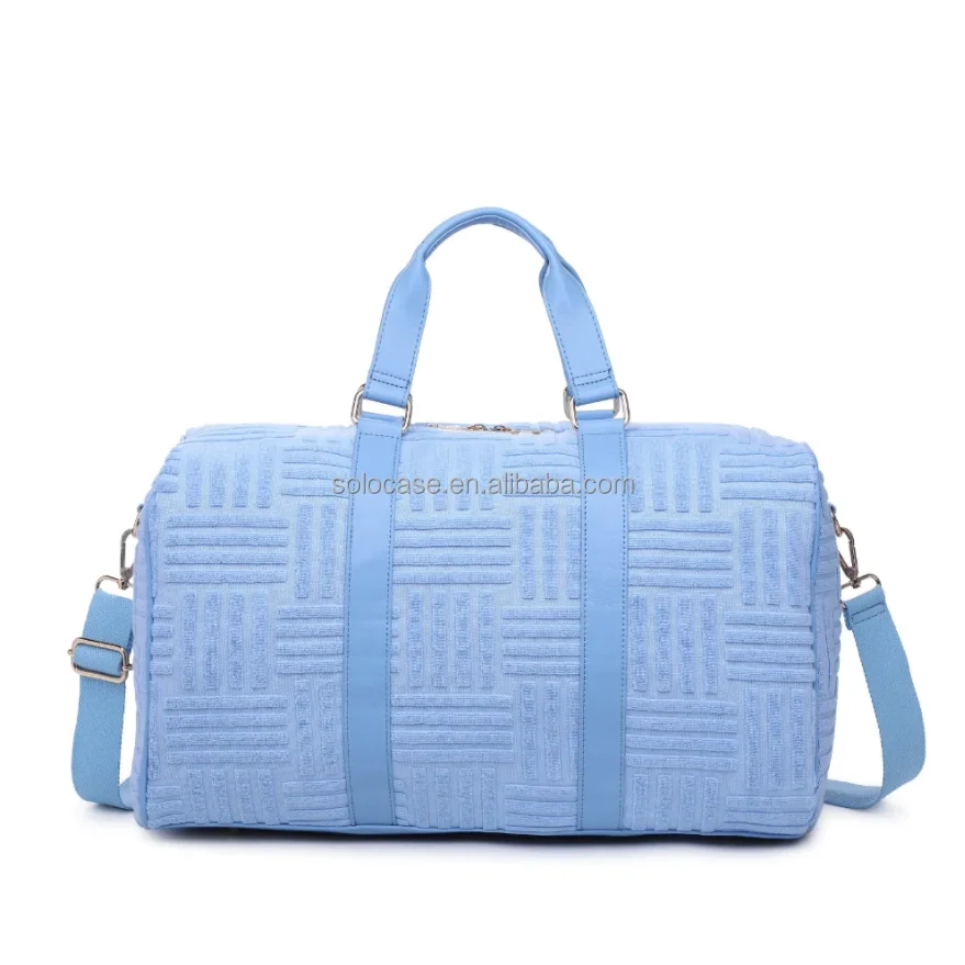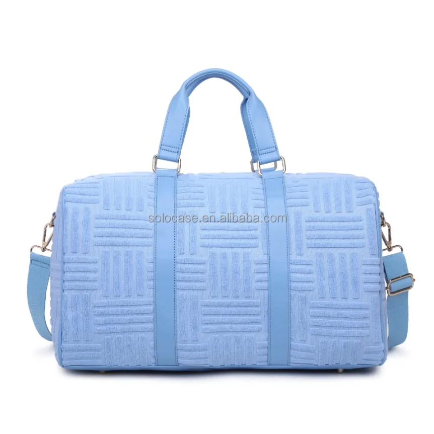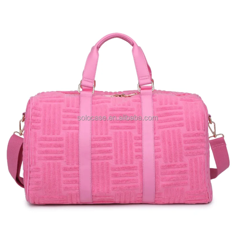 Women’s Fashion Terry Duffle Bag Stylish Soft Pink Terry Cloth Embossed Duffle Bag