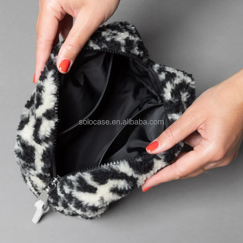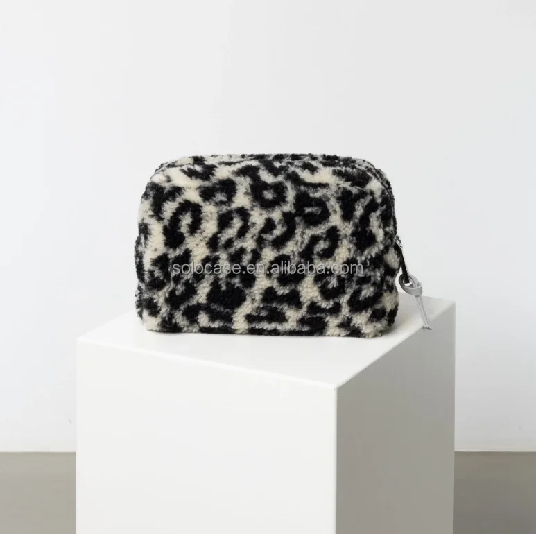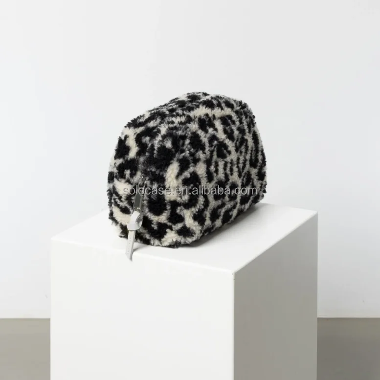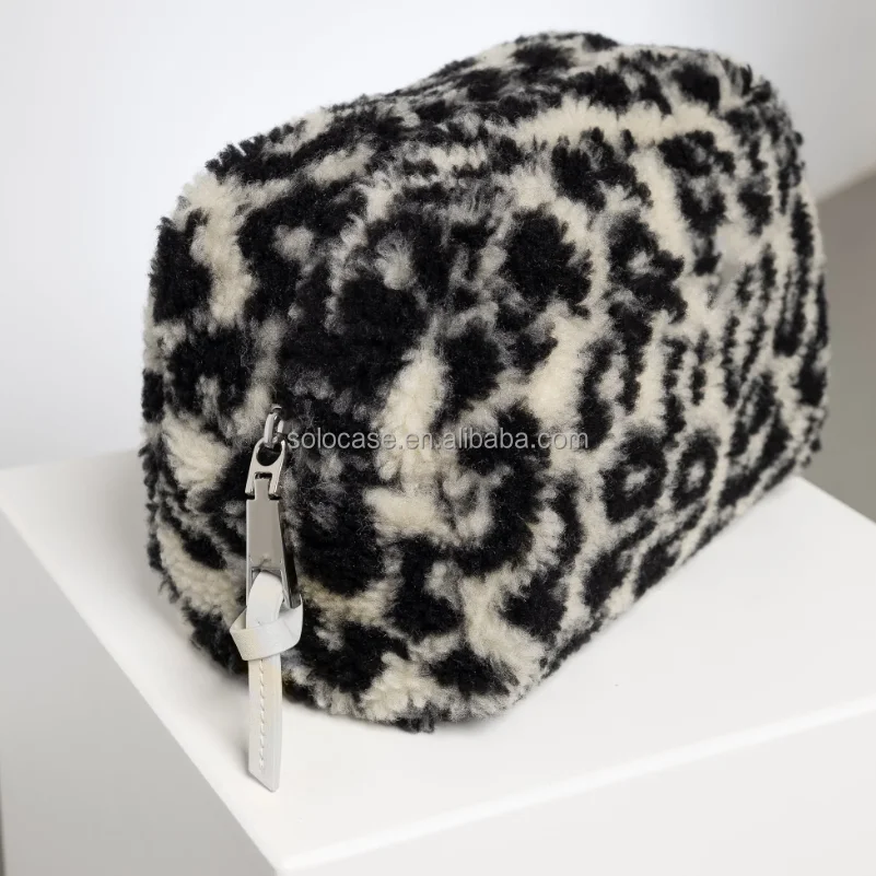 Leopard Print Color Plush Lady Cosmetic Pouch Teddy Velvet Makeup Bag Makeup Bag Travel Teddy Cosmetic Bag