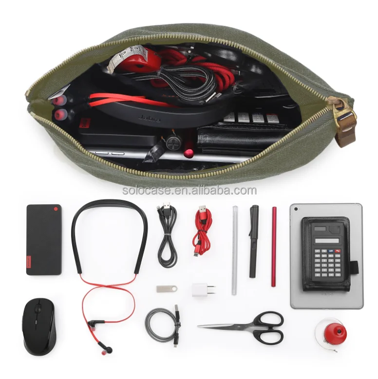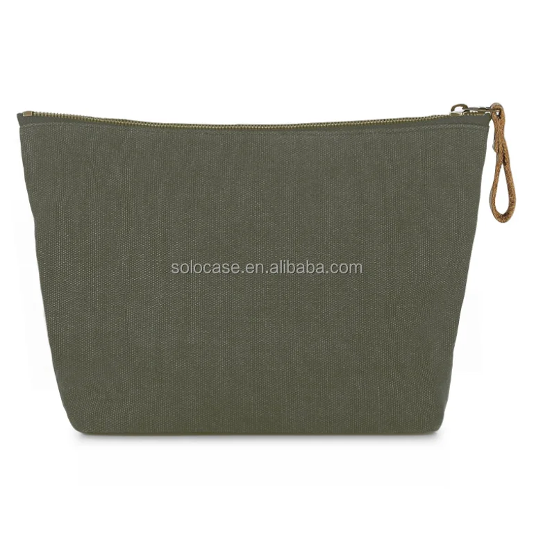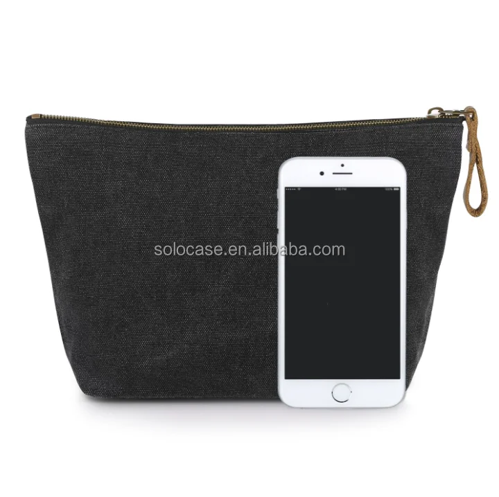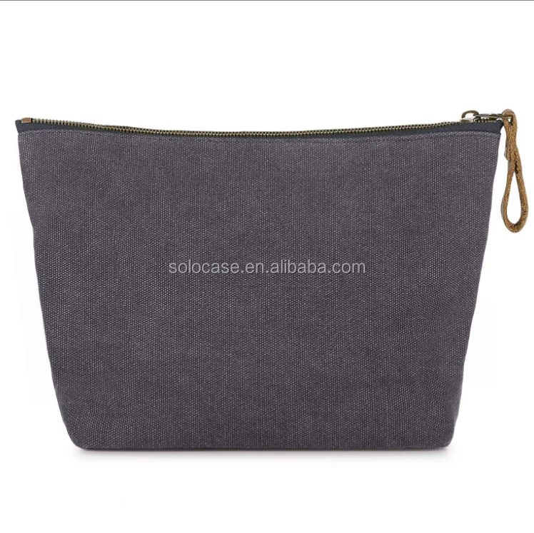 Vintage Waterproof Canvas Cosmetic Bag Polyester Lining Zip Custom Printing Pouch