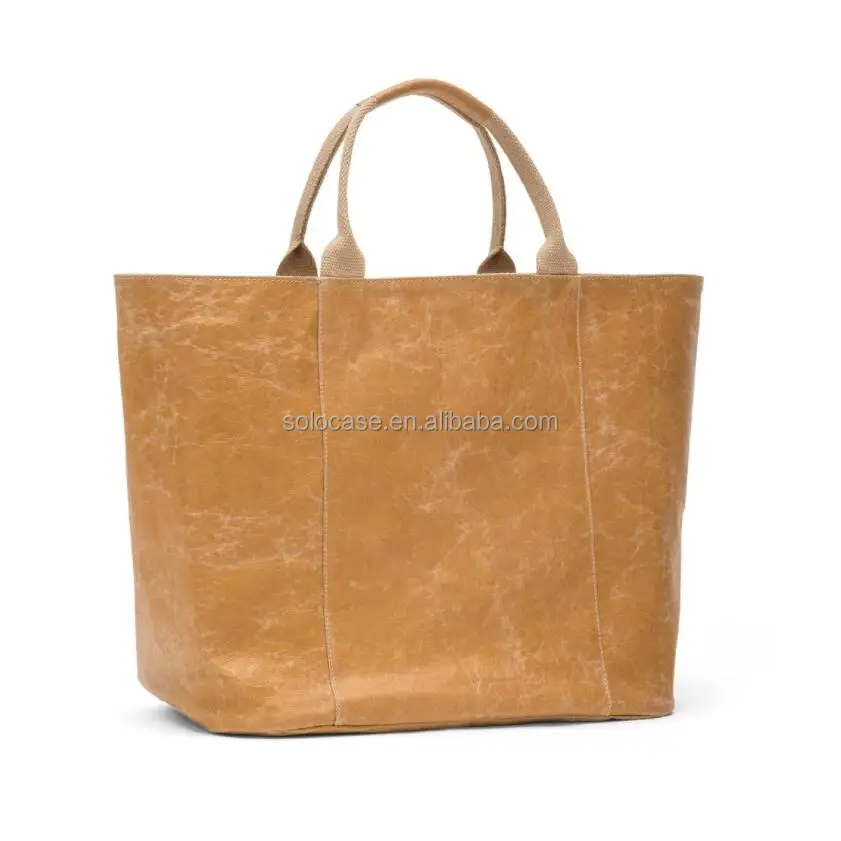 Reusable Unisex Grocery Shopping Bags Waterproof Washable Kraft Paper Tote Bag With Fabric Lining Handbags for All Ages