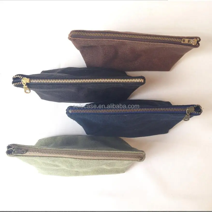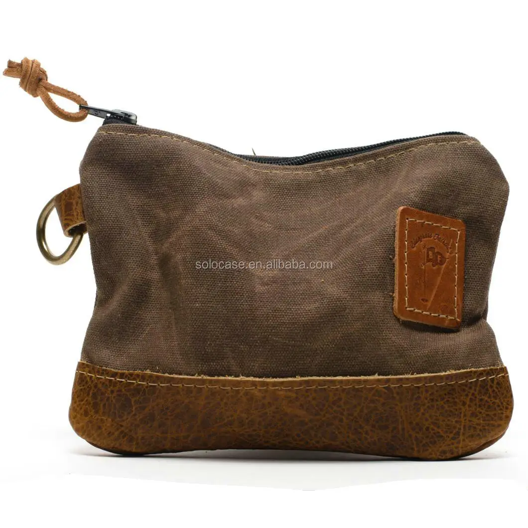 Waxed Canvas Zippered Golf Valuables Field Pouch in monogrammed