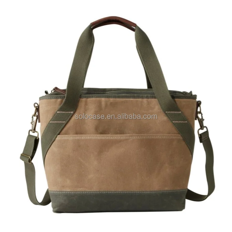 Food-Grade Tough 12-Oz. Waxed Canvas Lunch Tote with Leather Trim Cooler Bags Product