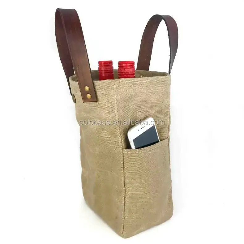 Durable Vintage Look Waxed Canvas Wine Cooler Bags Waterproof Gift Totes