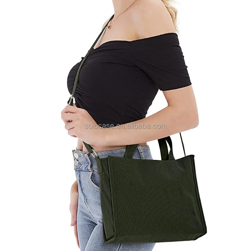 Tote Bag Women Corduroy Bag With Zipper Fashion Small Corduroy Tote Handbag