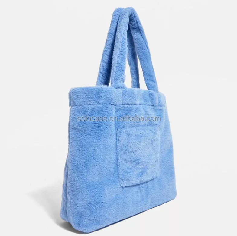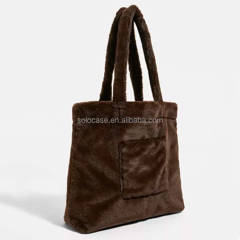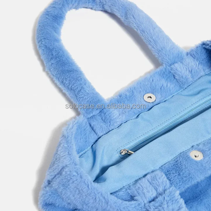 Women’s Large Fluffy Tote Handbag Cute Faux Fur Bag with Zipper Closure Soft Plush Material Custom Logo Large Capacity