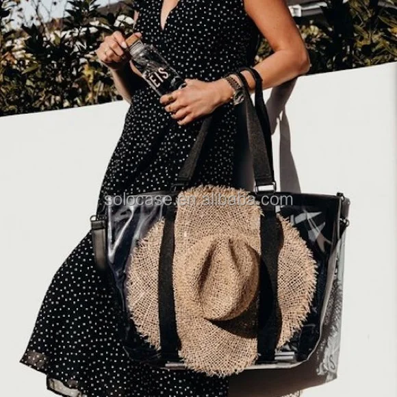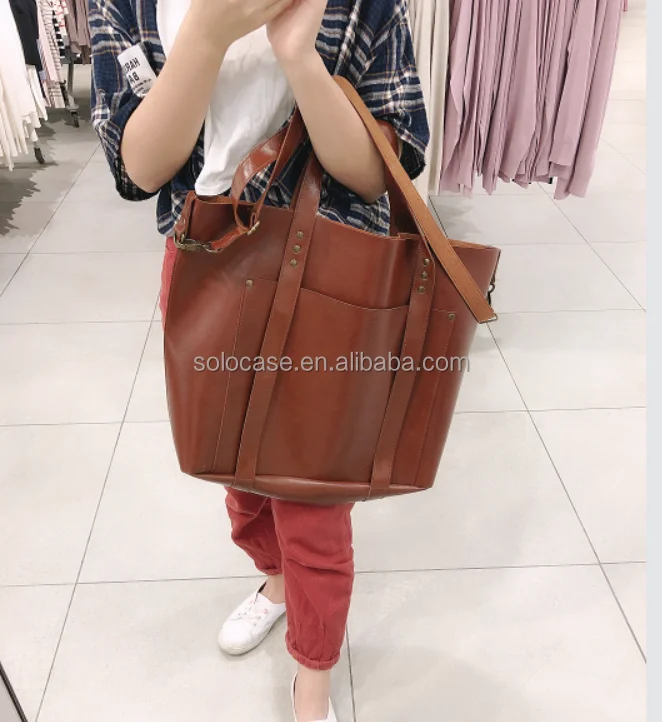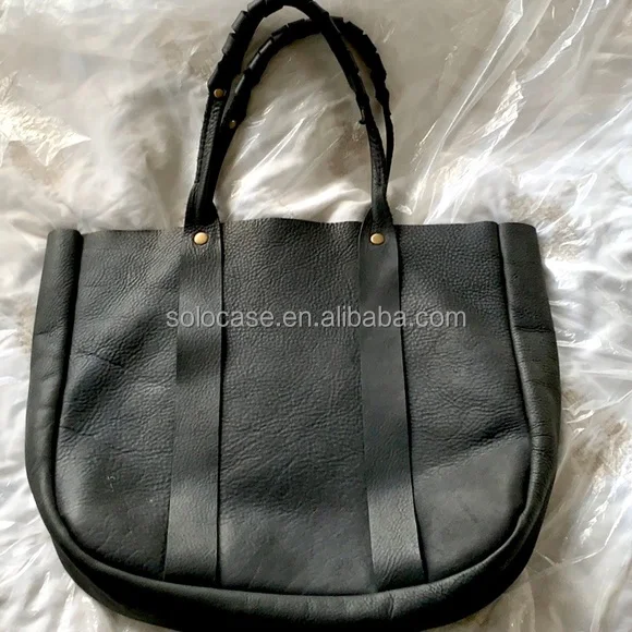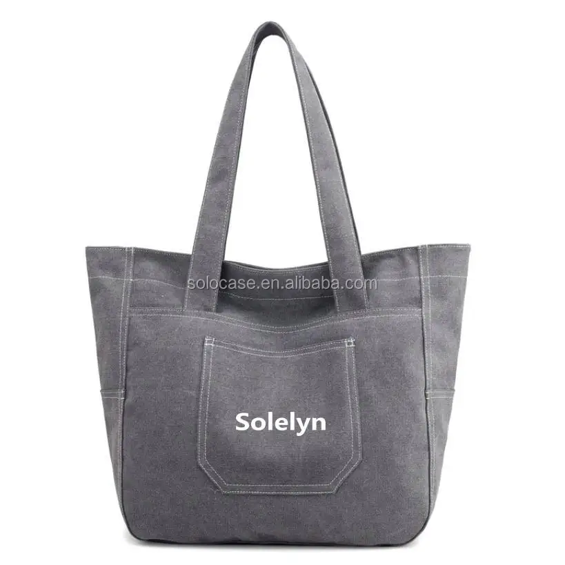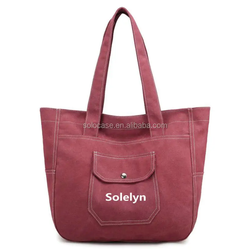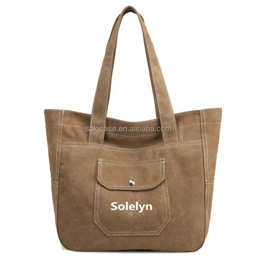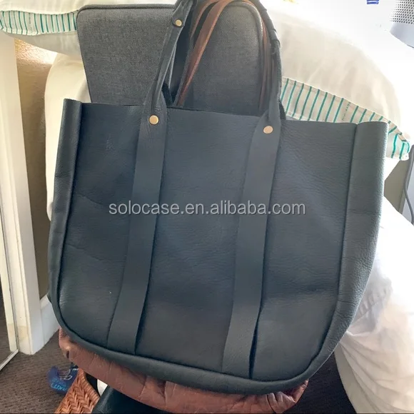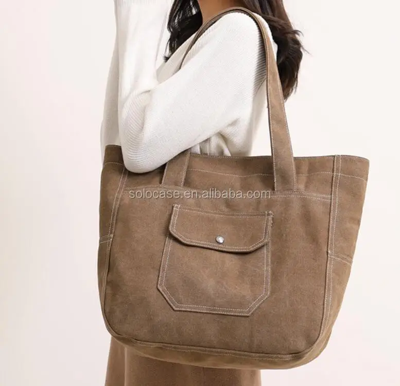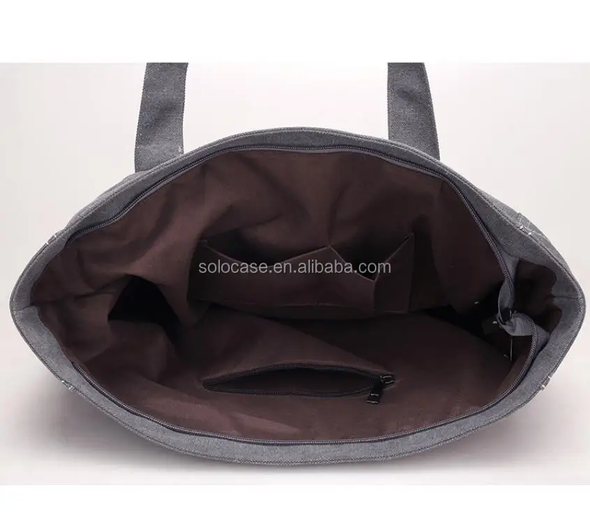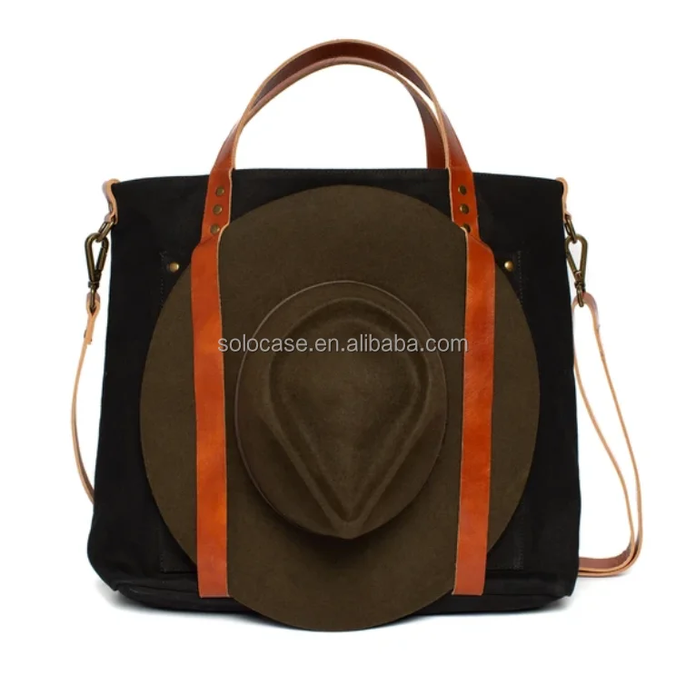 Canvas and Leather Tote Bag With Exterior Straps to Hold Towels Yoga Mats