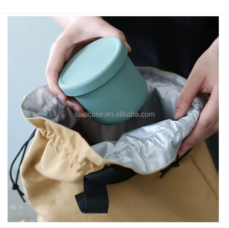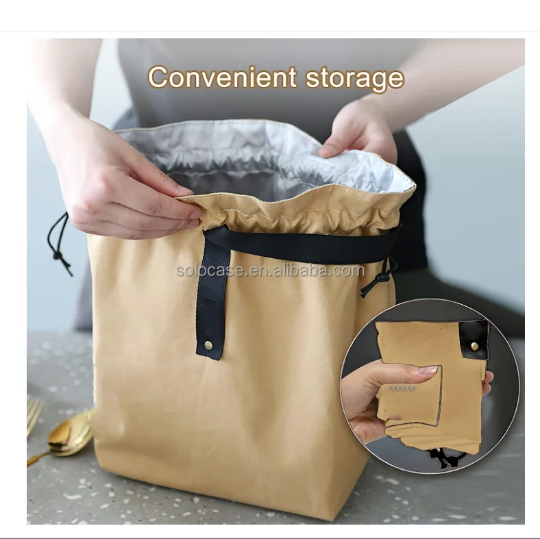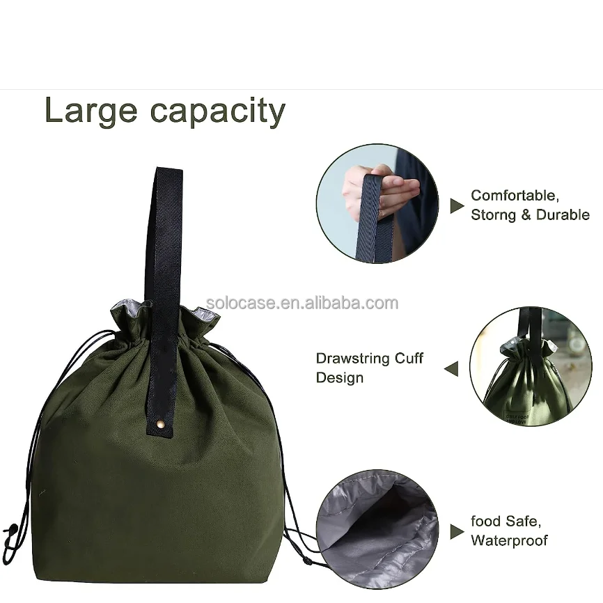 Canvas Drawstring Lunch Bag Reusable Lunch Bag Large Foldable Portable
