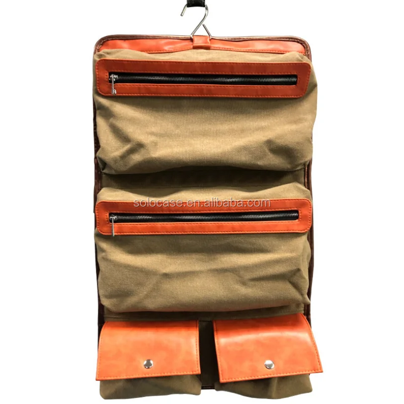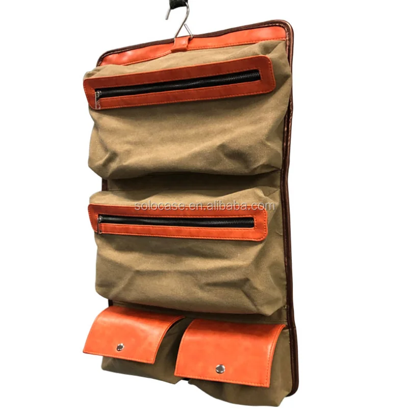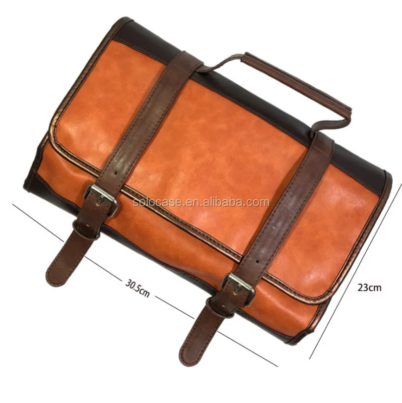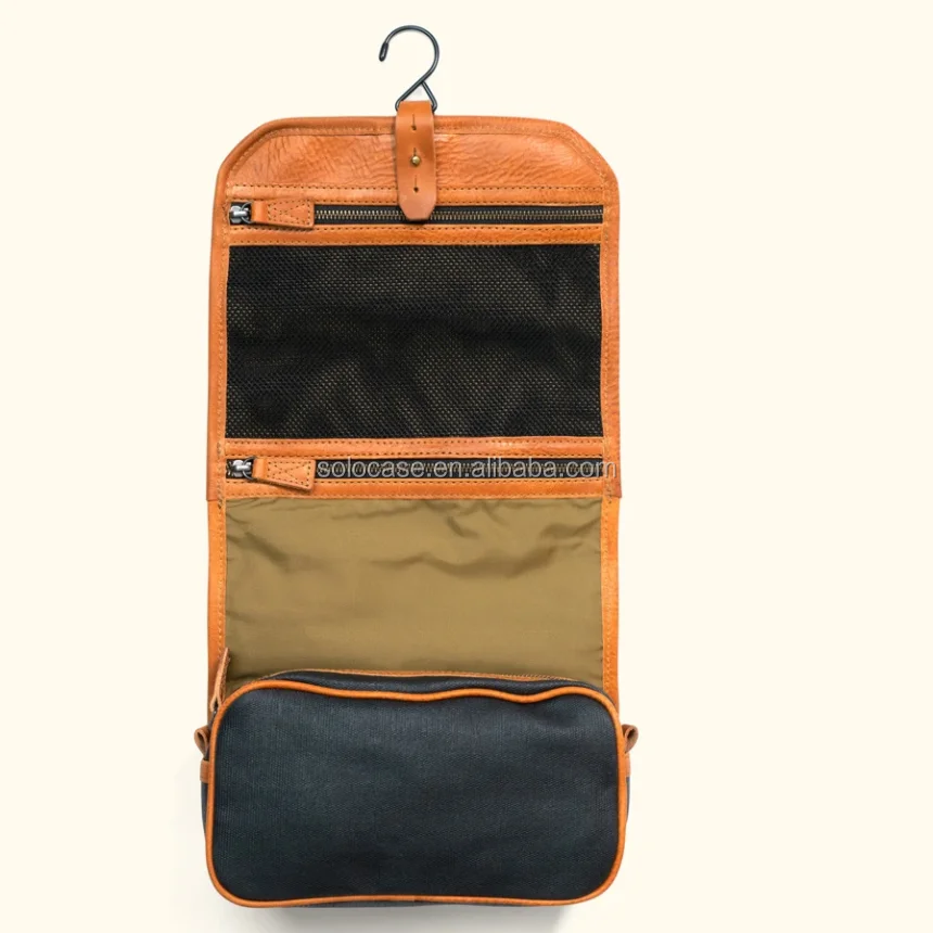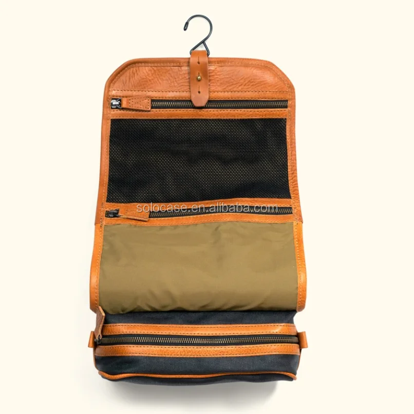 トイレトリーバッグのために巻かれたメンズレザーとワックスのキャンバス化粧品バッグ & ケース