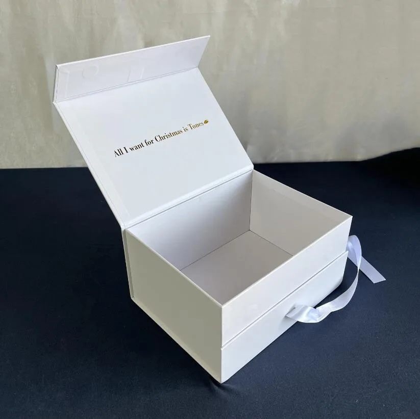 Custom logo Folding Gift Box Shoes Packing Luxury Magnetic Box with Ribbon Gift Box