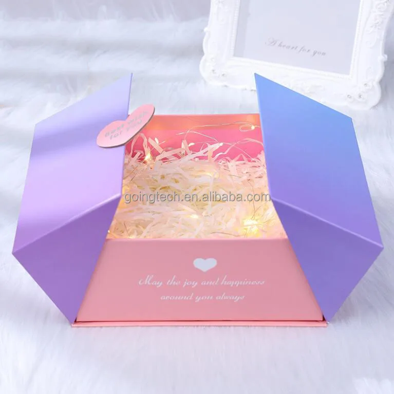 | 製品名 | Custom Luxury Double side open glossy blue valentine’s gift boxes with ribbon closure |