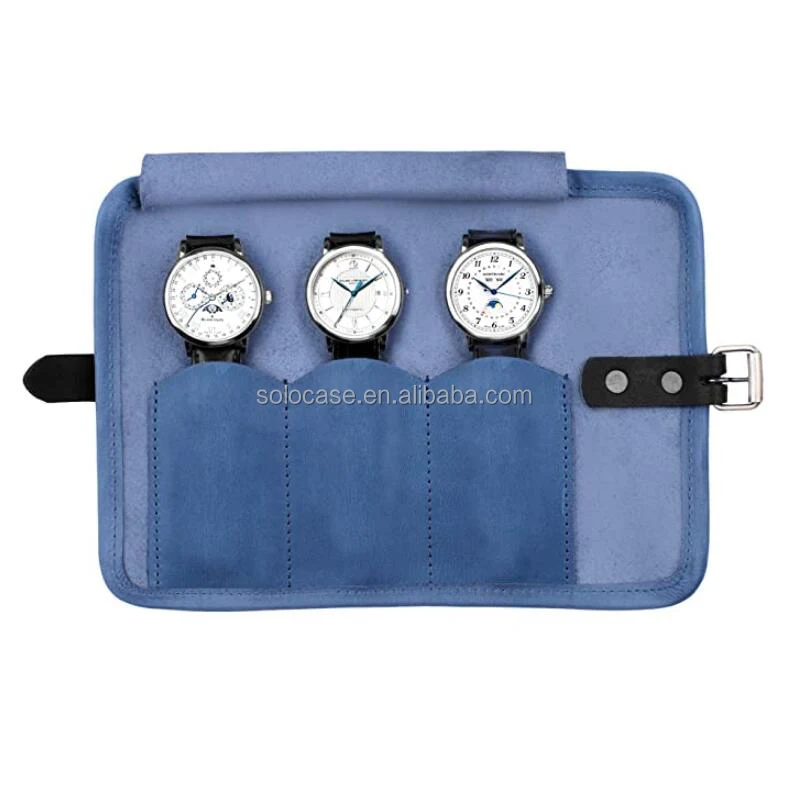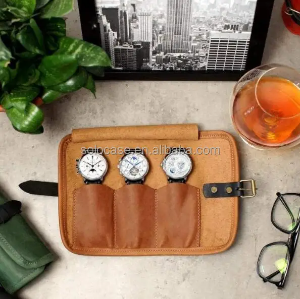 Custom Watch Storage Bag Leather Waterproof Travel Watch Roll Organizer Holds up to 3 Watches