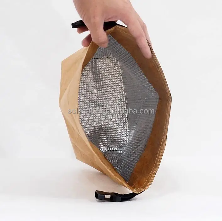 Brown Durable Waterproof Coated Dupont Paper Thermal Bag Insulated Lunch Cooler Tyvek Bag for Food
