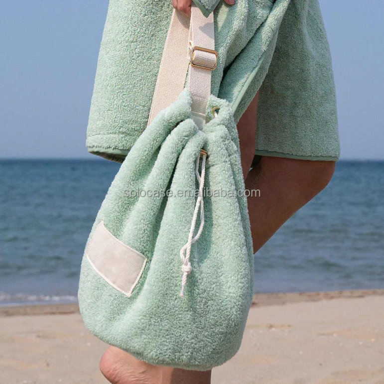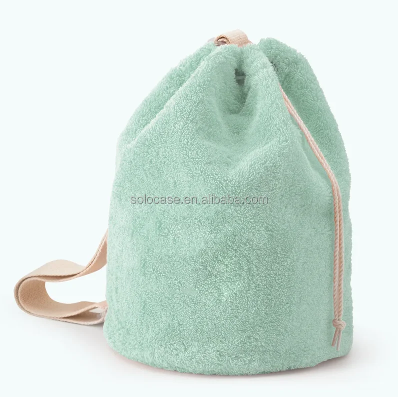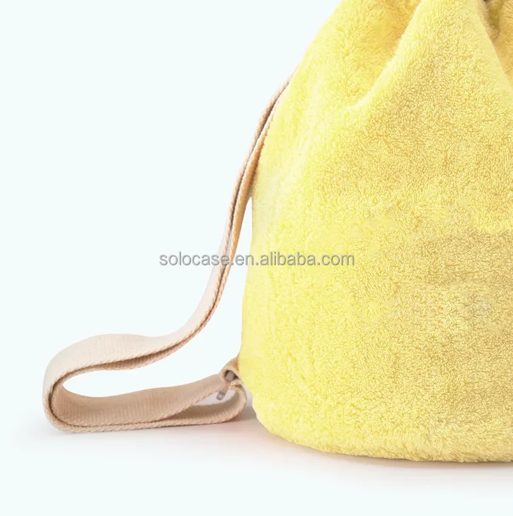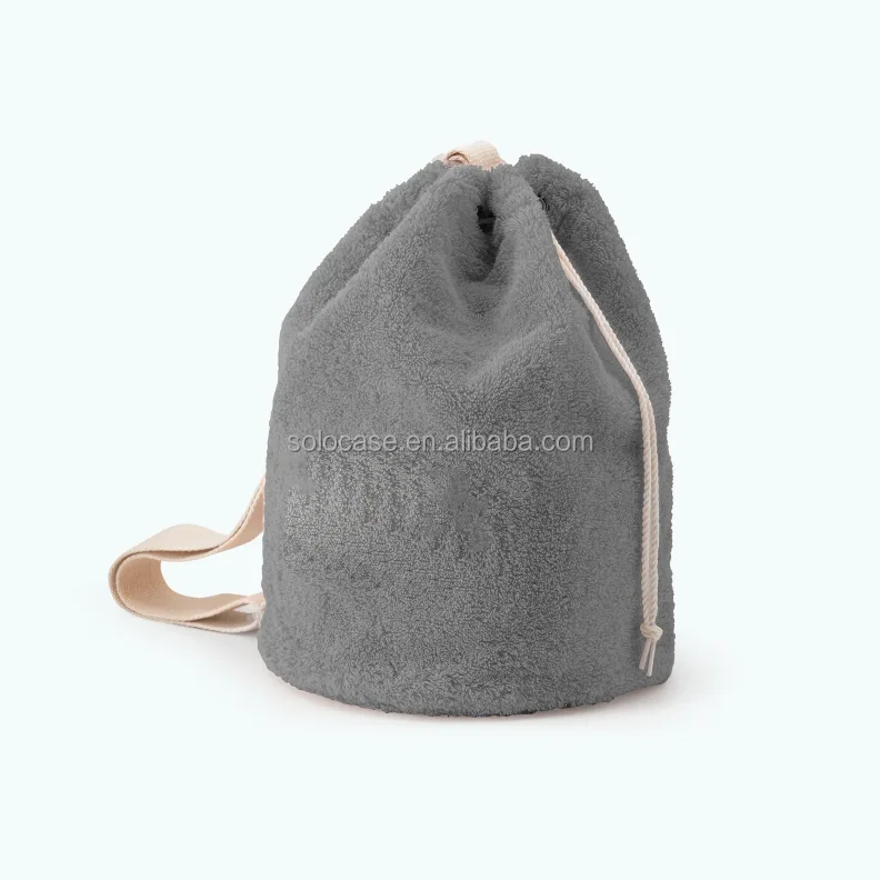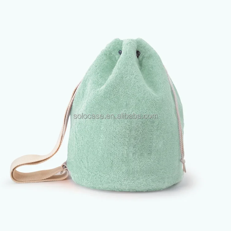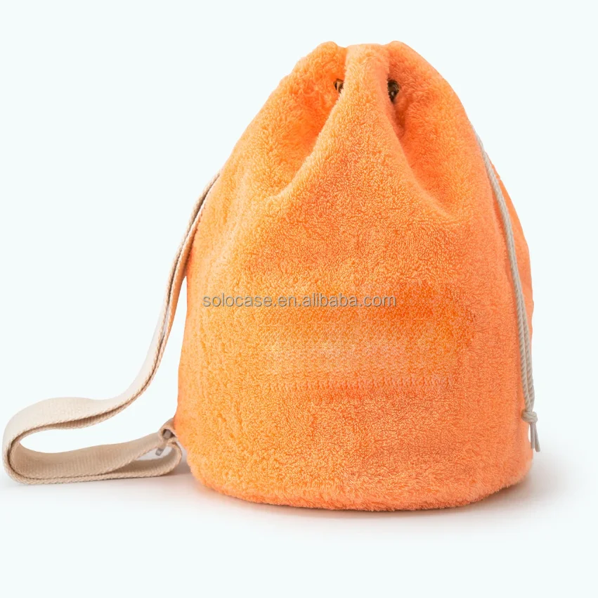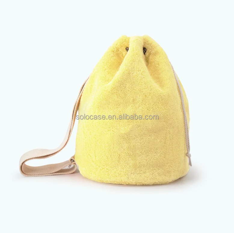 Fashion Terry Small Drawstring Bucket Purse for Women Cute Little Terry Crossbody Bag