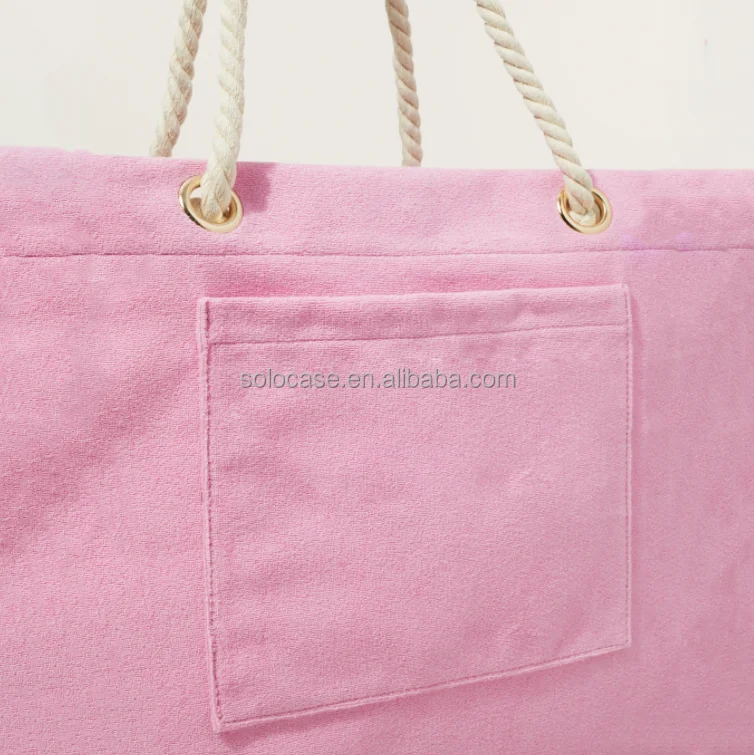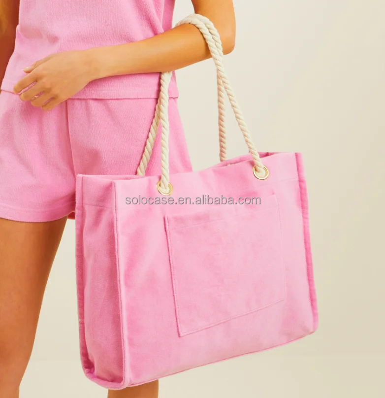 Large Capacity Portable Tote Handbag Eco-Friendly Towelling Soft Fabric Cotton Polyester Lining Custom Logo Letter Decoration