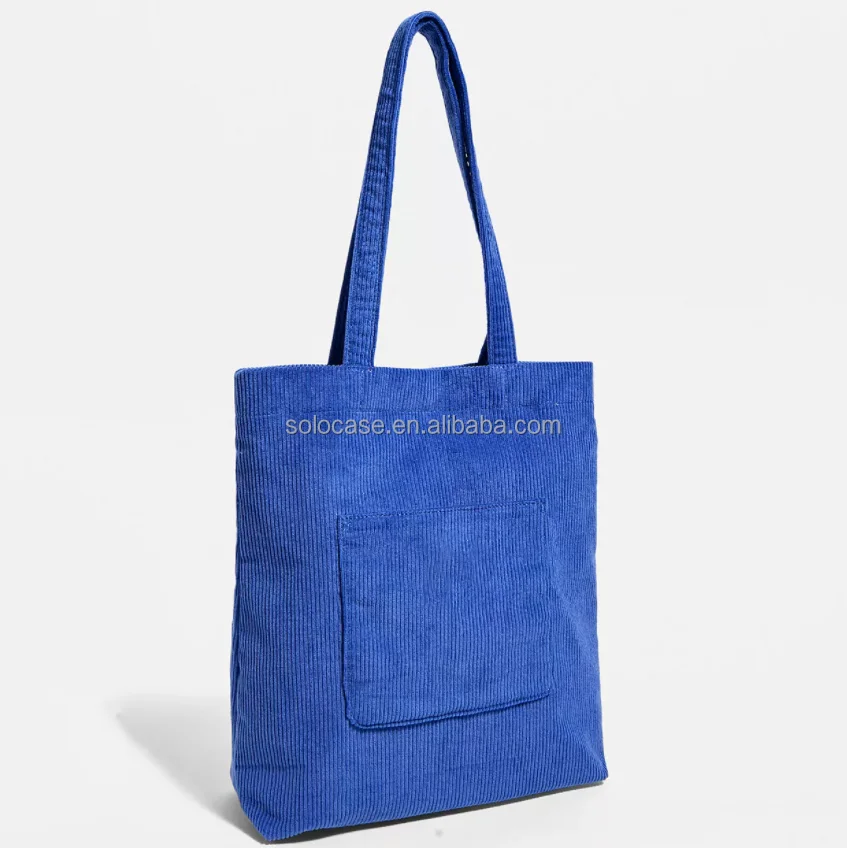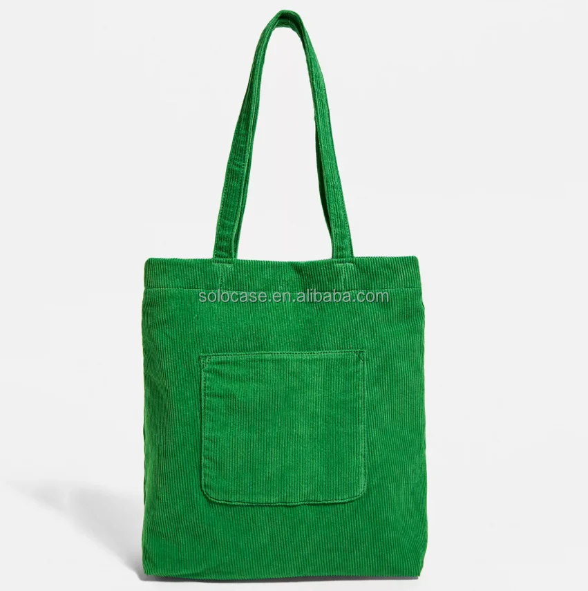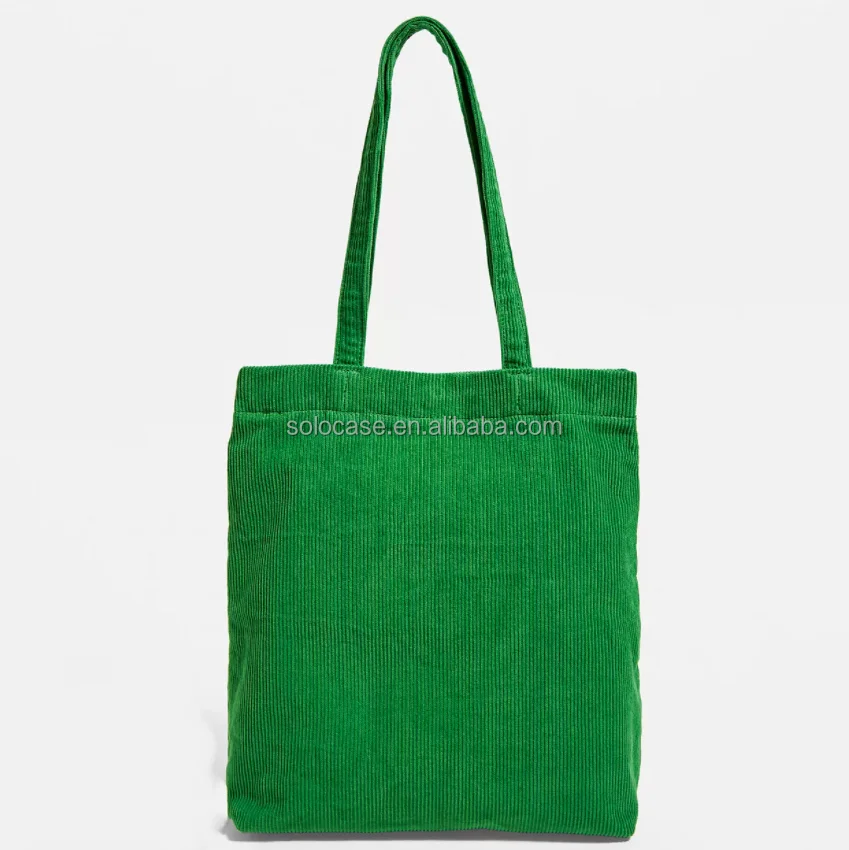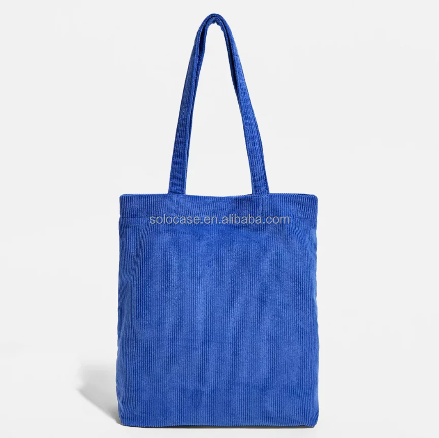 Large Shopper Corduroy Totes Shoulder Bags With Custom Embroidery Logo Shoulder Zipper Corduroy Tote
