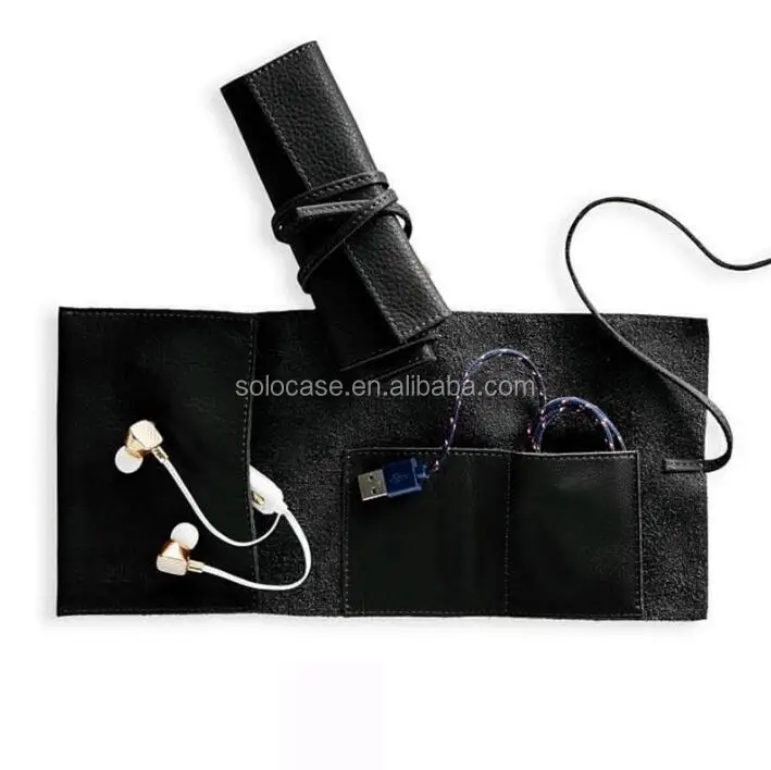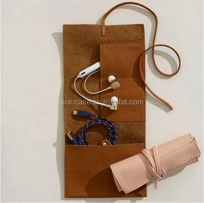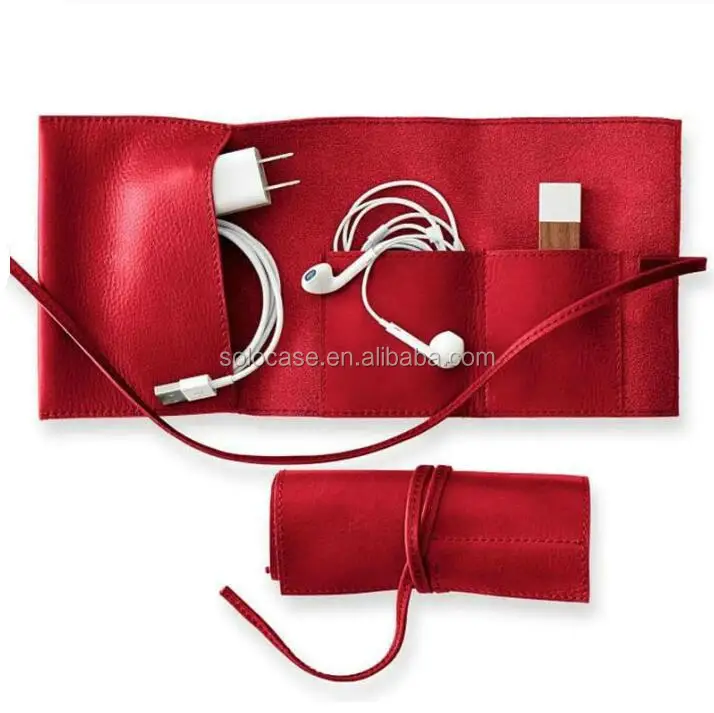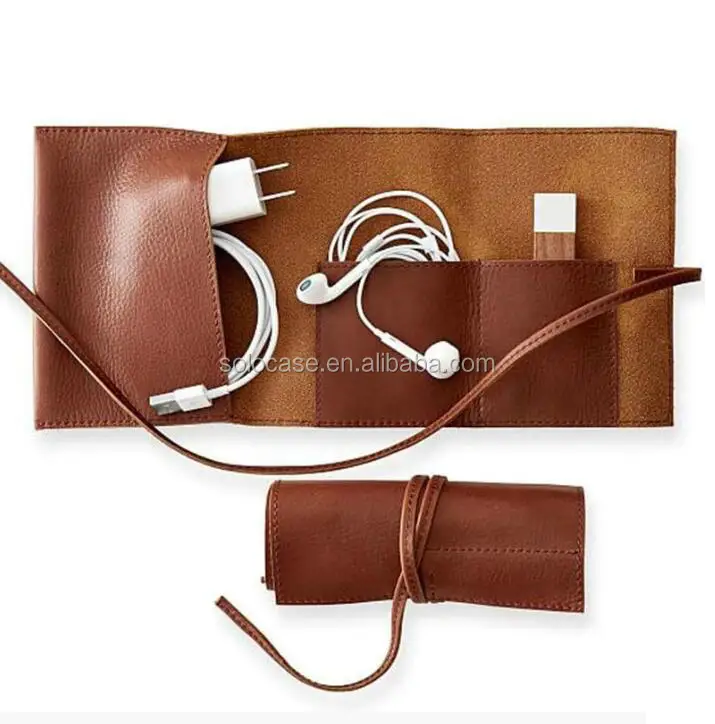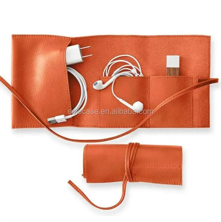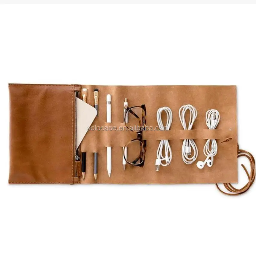 USBケーブル用のレザーエレクトロニクスオーガナイザーロールバッグ & SDカード充電器ラップトップバッグ & カバー