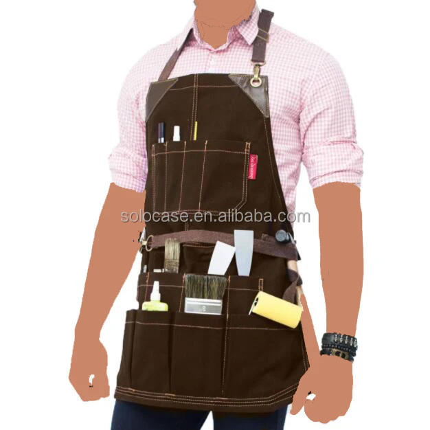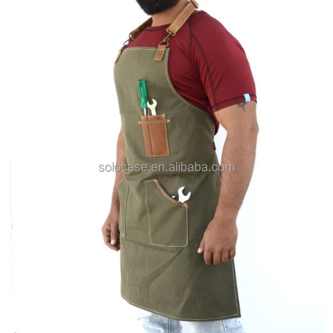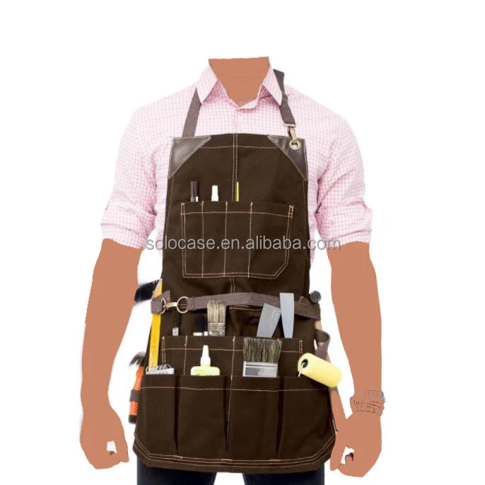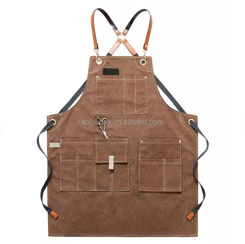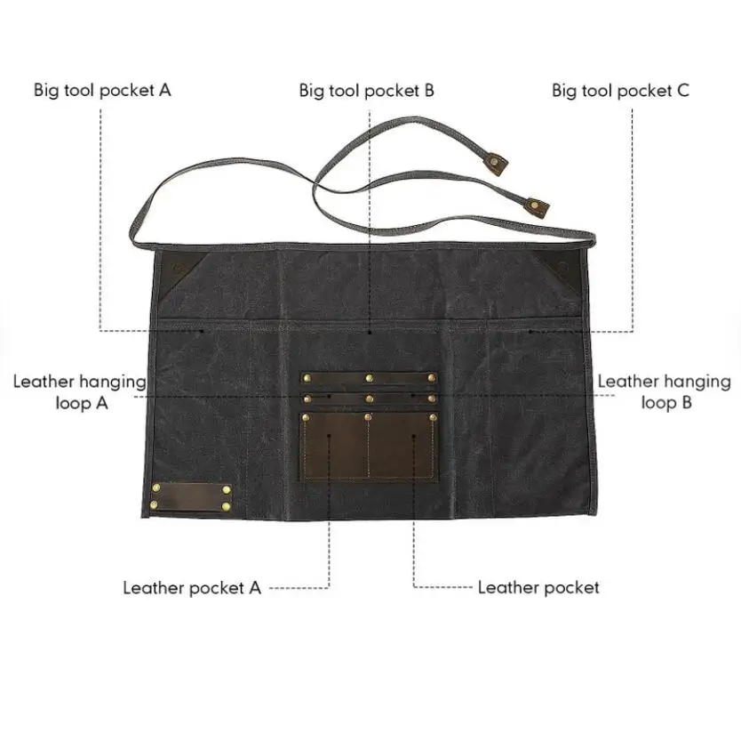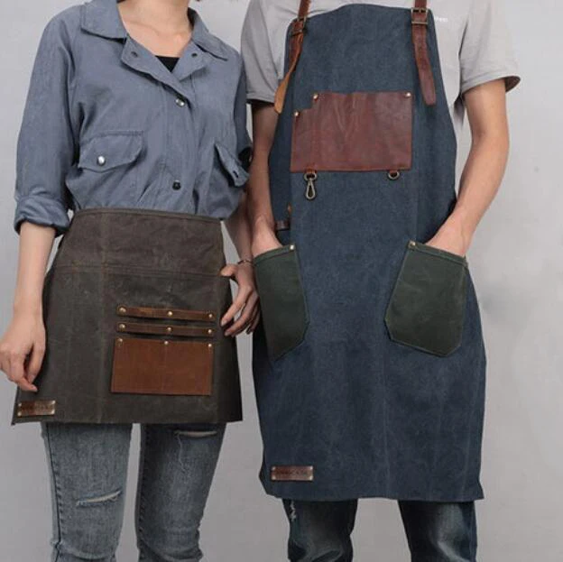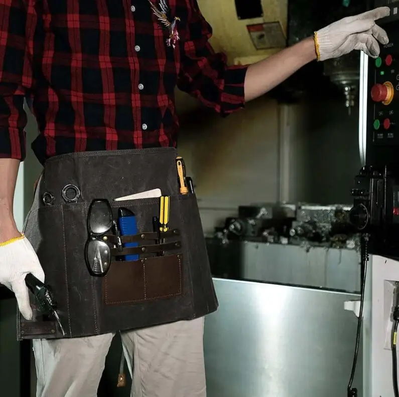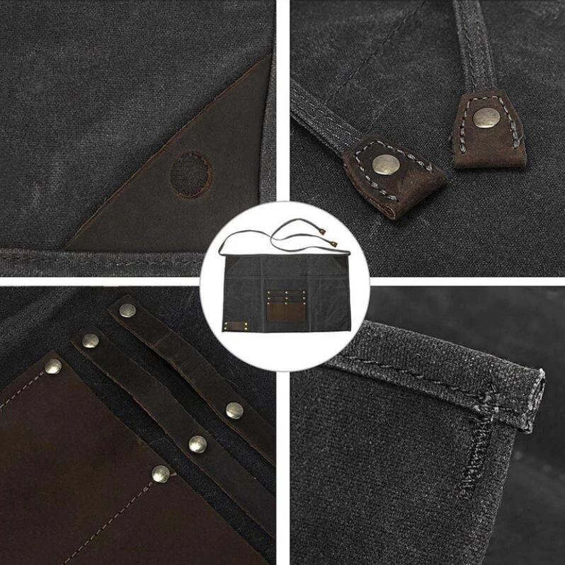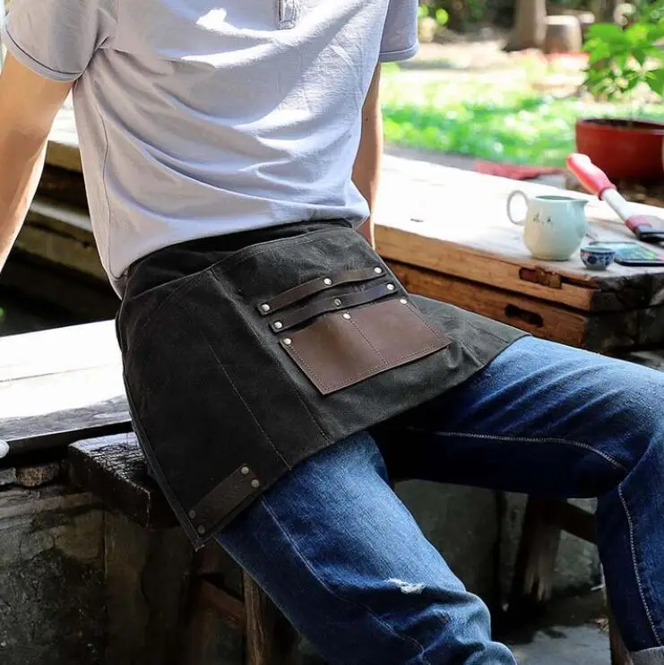 Adjustable Half Waist Work Apron Waterproof Leather Waxed Canvas Special Purpose Bags & ケース