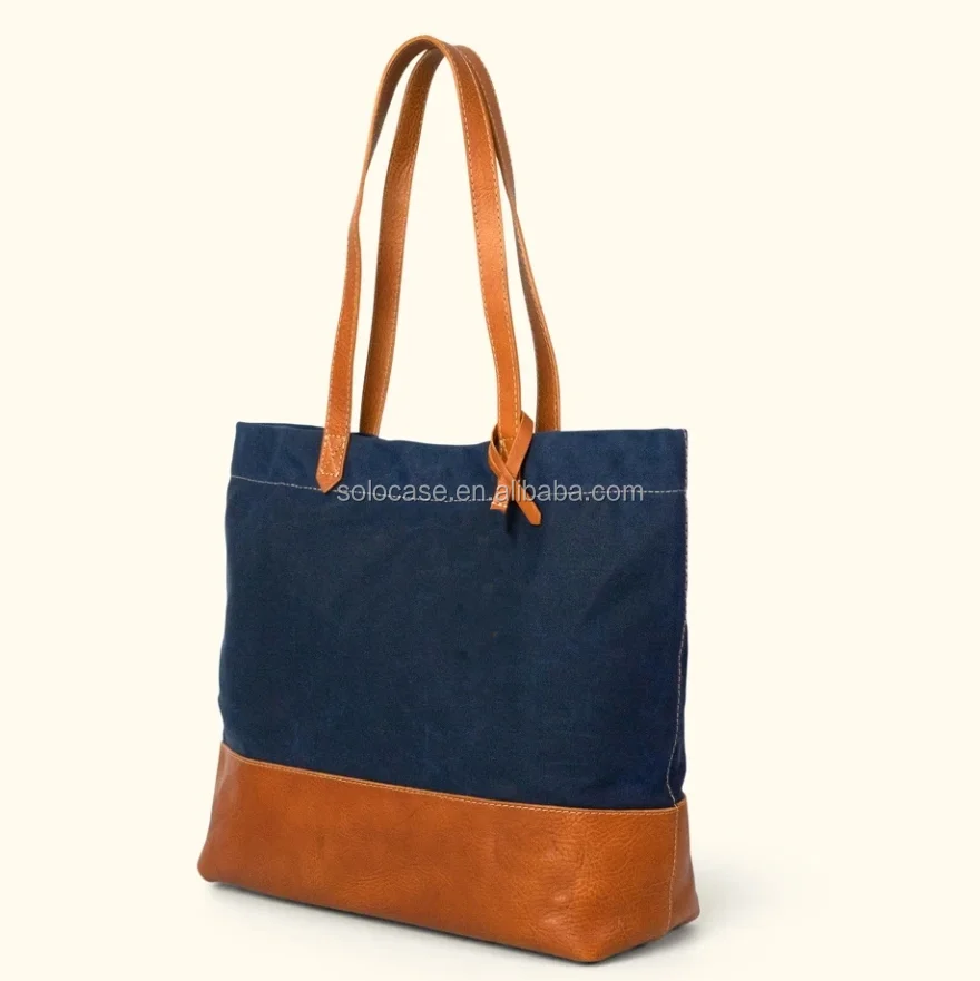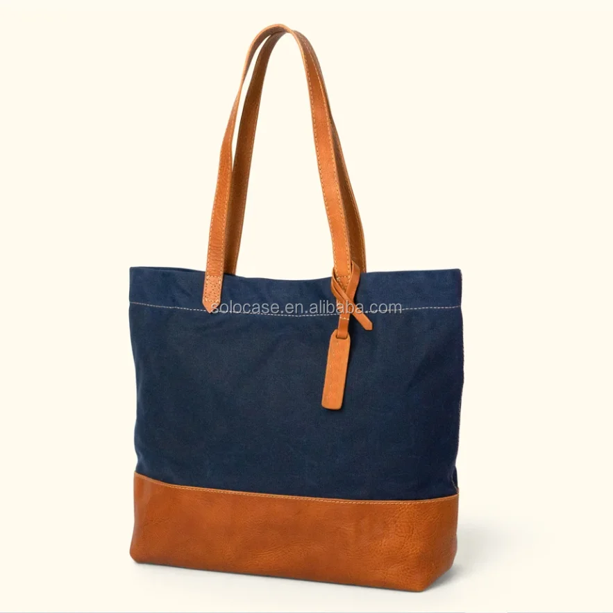 Women’s Waxed Canvas and Brown Vegetable Tanned Leather Tote Bag
