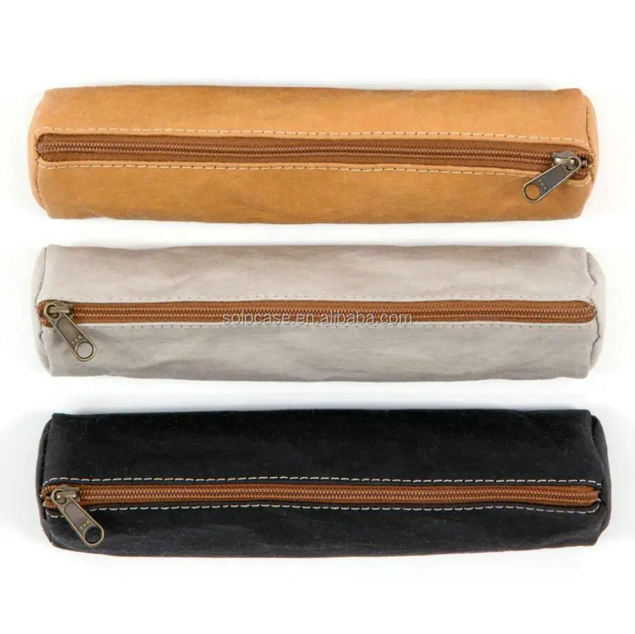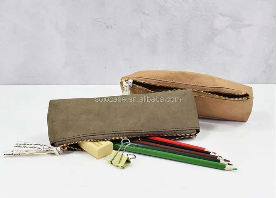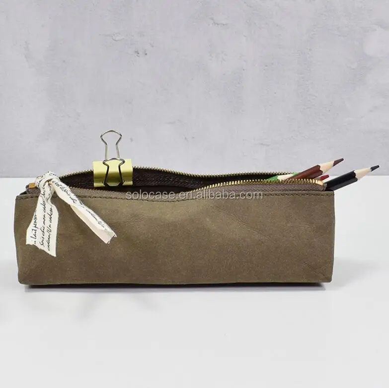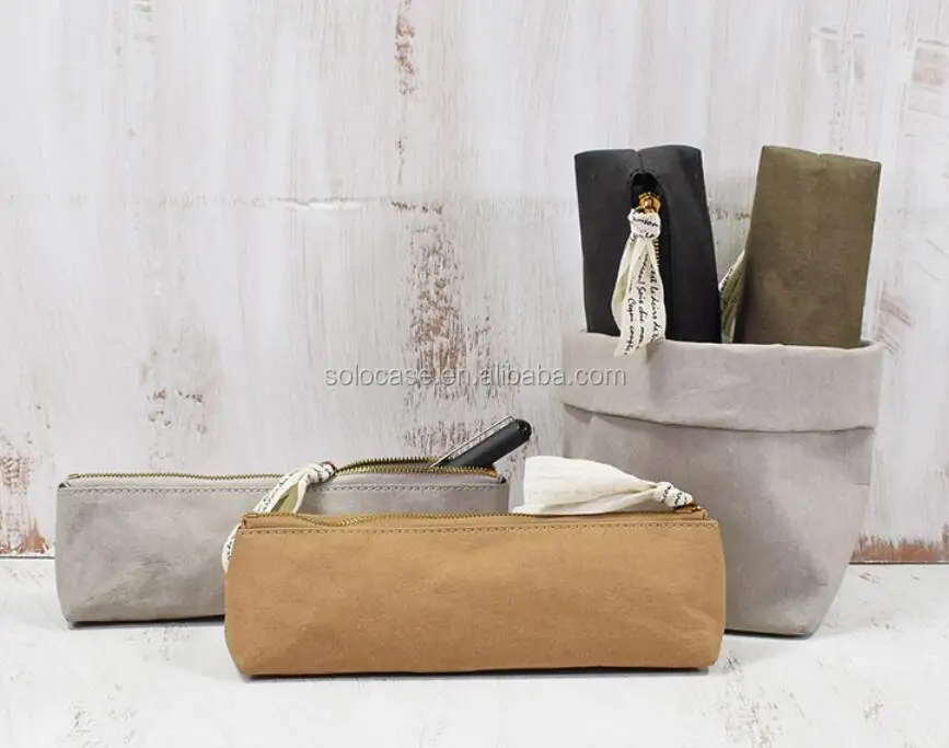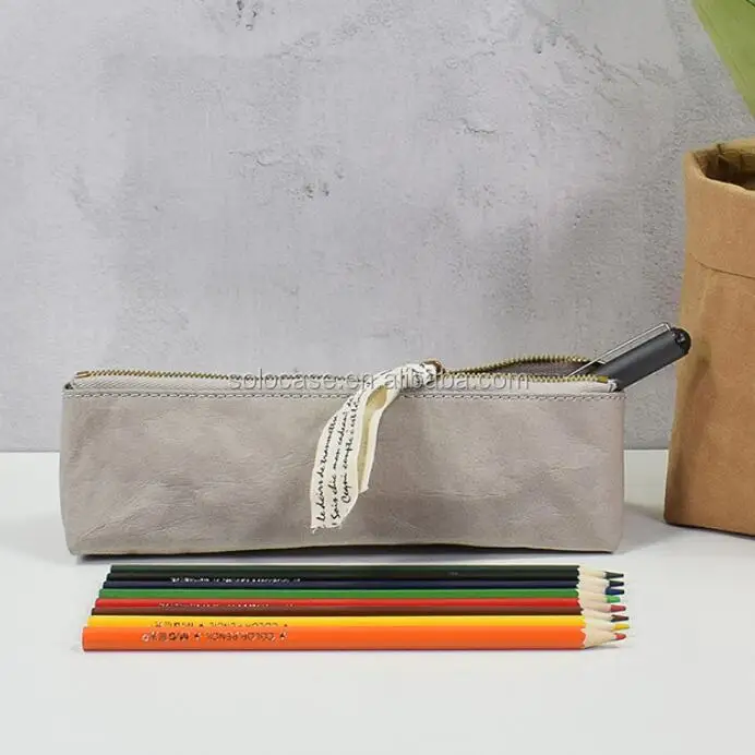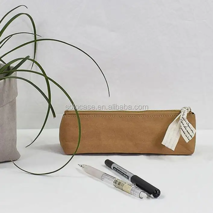 100% 天然繊維洗えるクラフト紙コスメティックバッグスリムペンシルケース特異的目的環境にやさしい