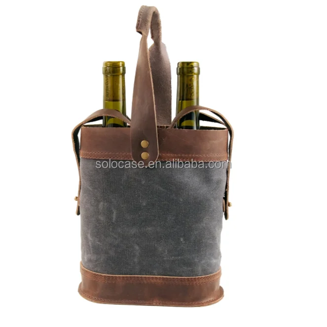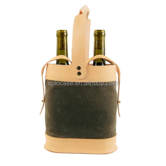 Waxed Canvas Double Wine Tote for Convenient Transport to Party