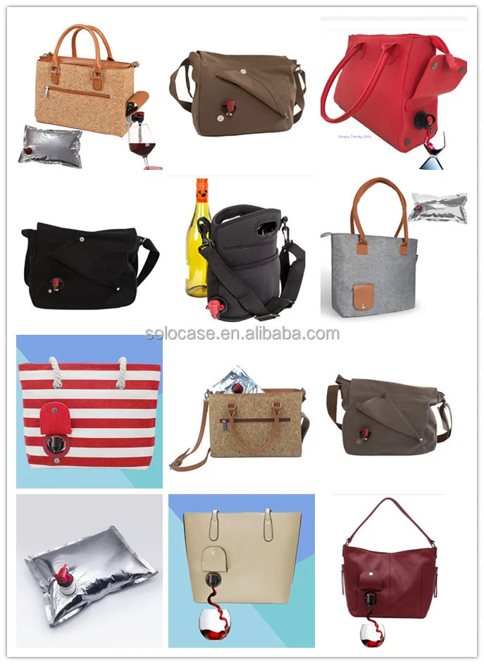 2-Litre Wine Purse Cooler Bag Canvas Insulated with Wine Bladder Perfect for On-The-Go Drink Storage