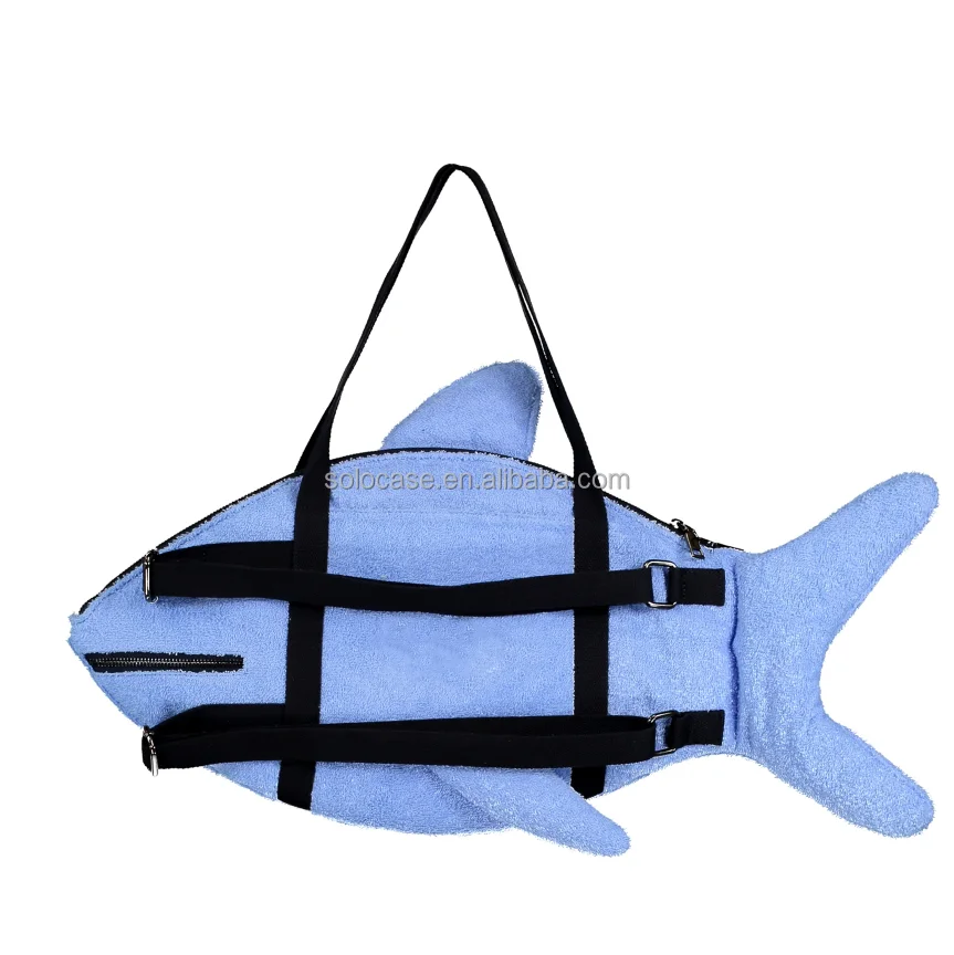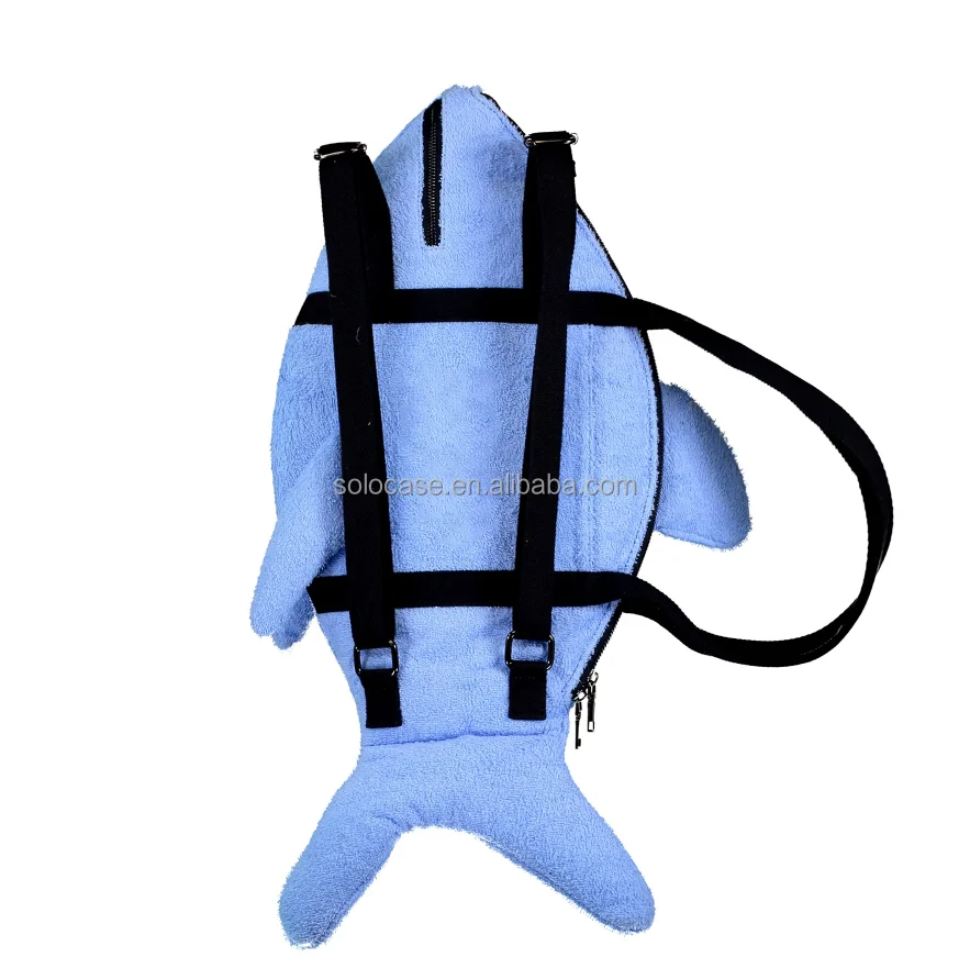 Terry Cloth Fish Tote Bag Womans Child Fish Shape Beach Bag Terry Cloth Beach Backpack